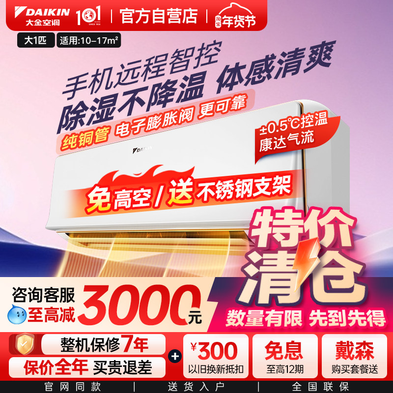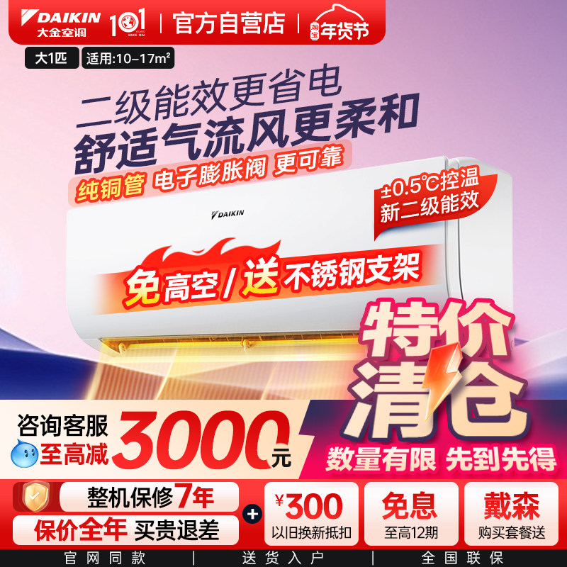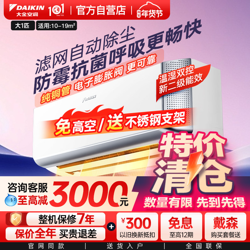大金空调官旗正品新国标二级大1匹静音省电226卧室挂机特价清仓