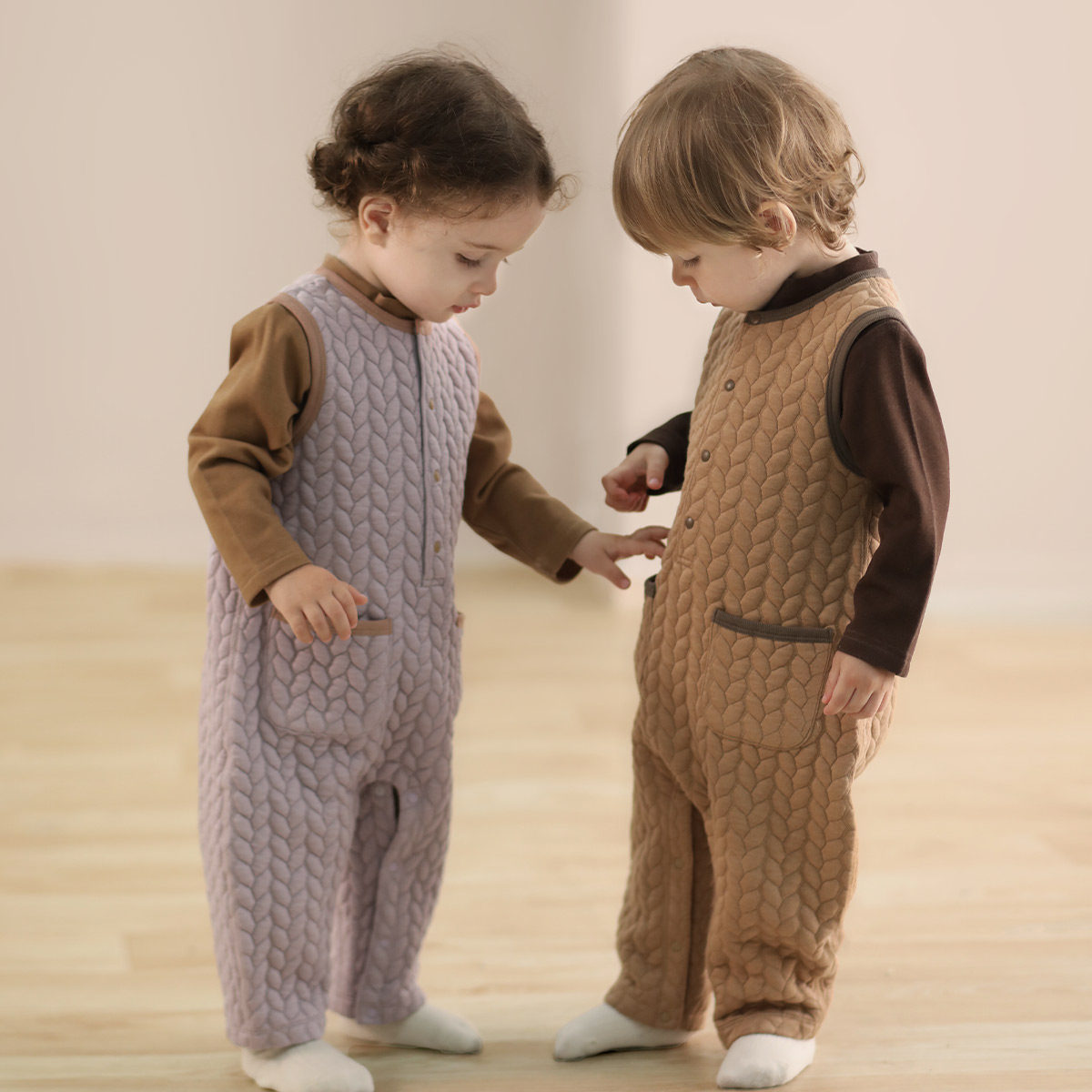 男宝宝背心连体衣秋冬夹丝哈衣女宝加厚保暖连身衣服婴儿背带裤子
