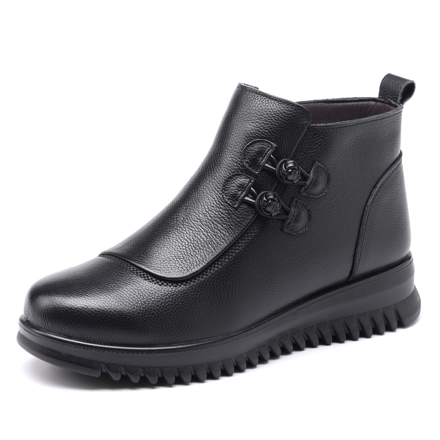 中老年女鞋41特大码42防滑平底半靴妈妈真皮棉鞋轻便保暖裸短皮靴