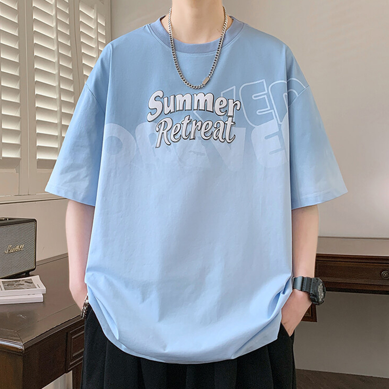 短袖t恤男孩青少年夏季新款大童初中学生上衣宽松圆领打底衫男装