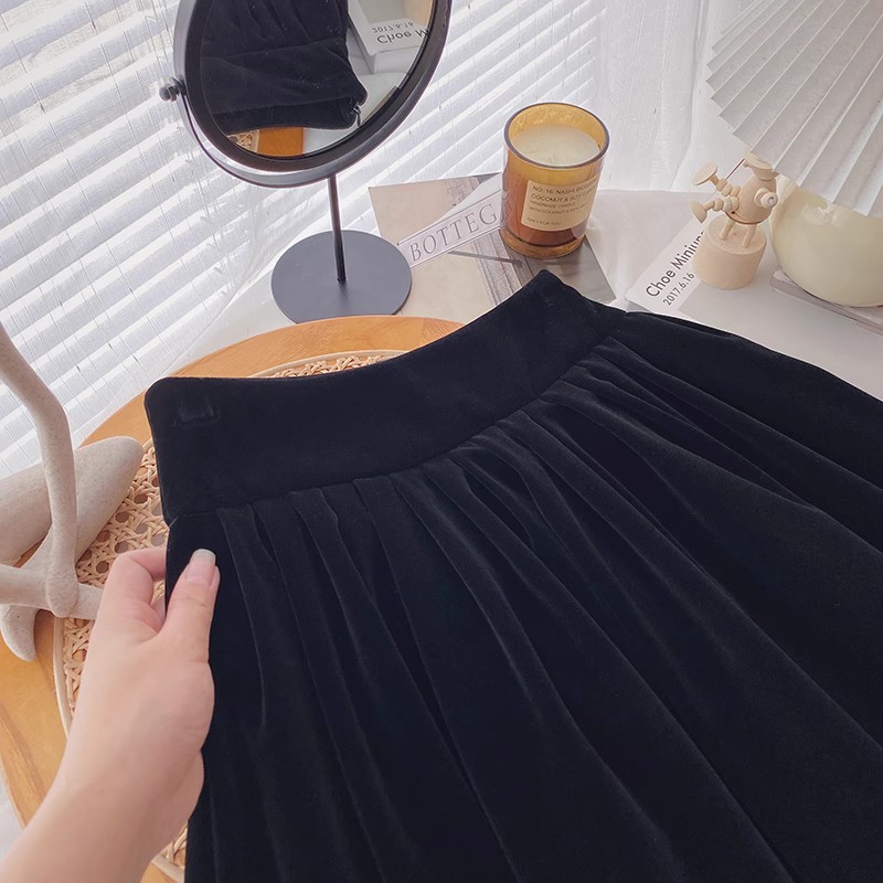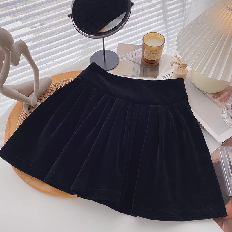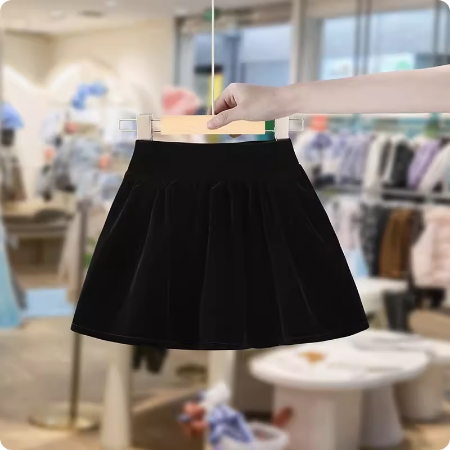 女童半身裙春秋冬2025新款女孩大童洋气黑色短裙深秋儿童丝绒裙子