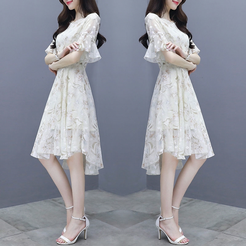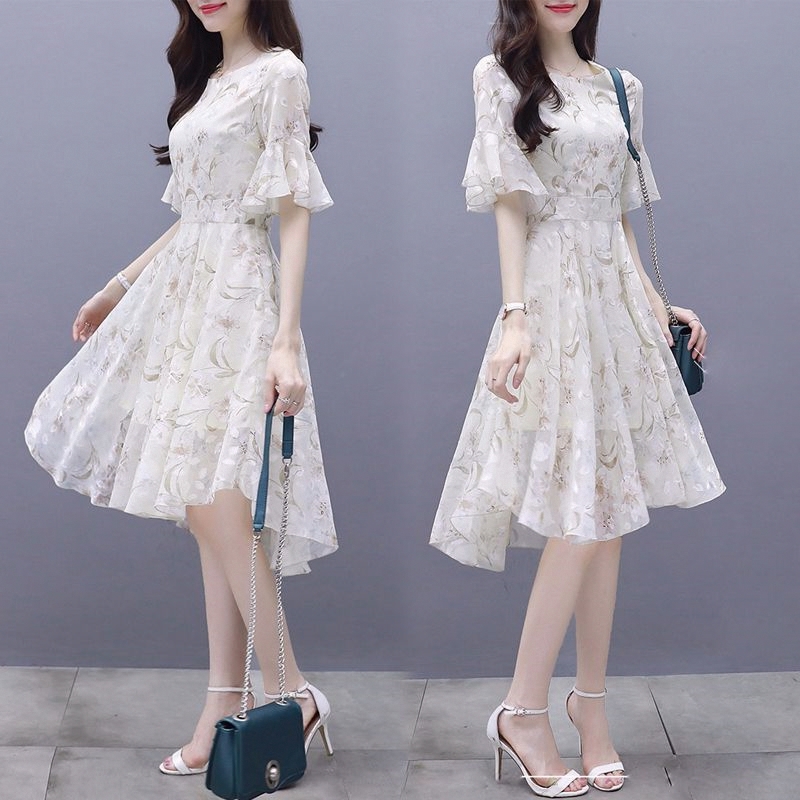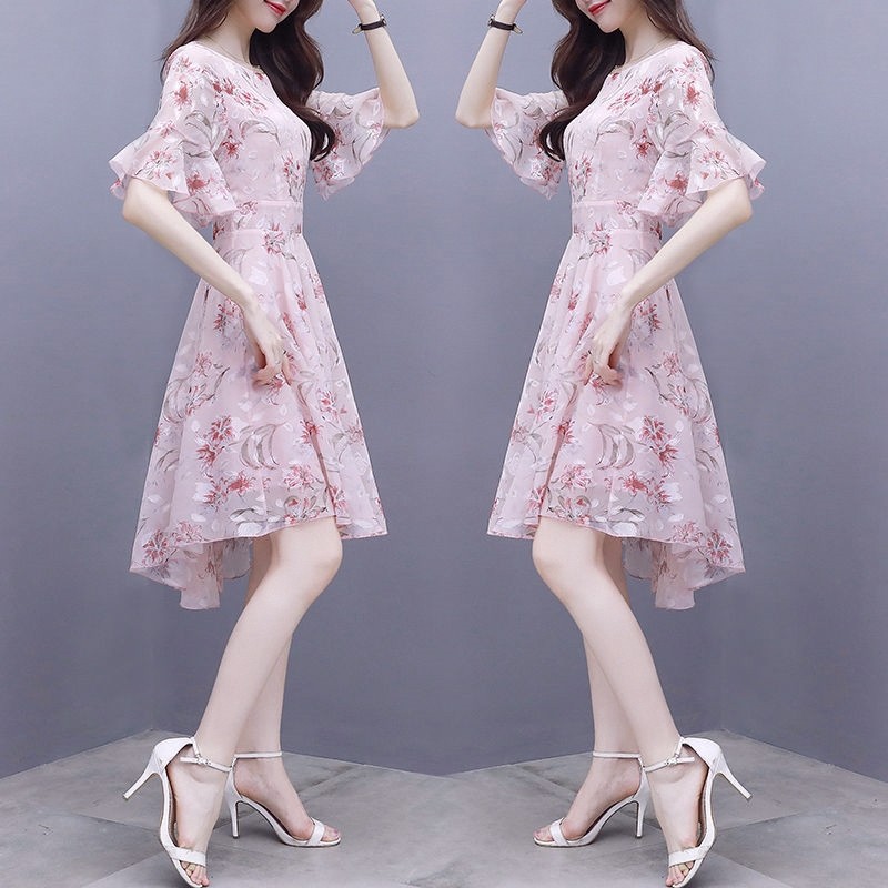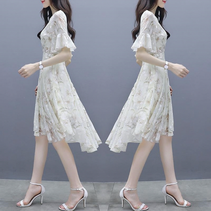 裙子女夏装2025新款韩版收腰显瘦气质雪纺碎花连衣裙超仙女小个子