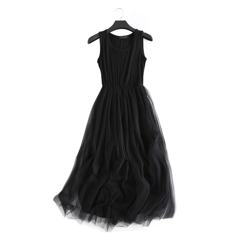 莫代尔内搭蕾丝网纱吊带连衣裙