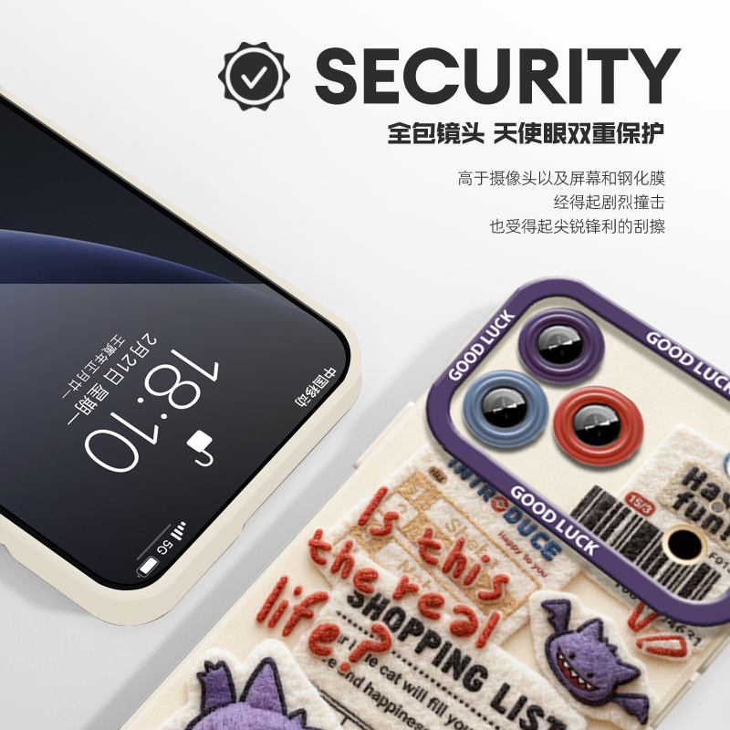 毛绒宝可梦适用苹果17手机壳iPhone16promax皮卡丘15新款14小火龙13mini耿鬼12动漫11男女x硅胶xr/xs/8/7/air