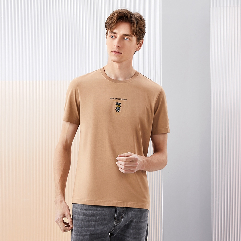【冰藻泥】柒牌短袖T恤男夏季新品柒先生印花圆领休闲体恤衫