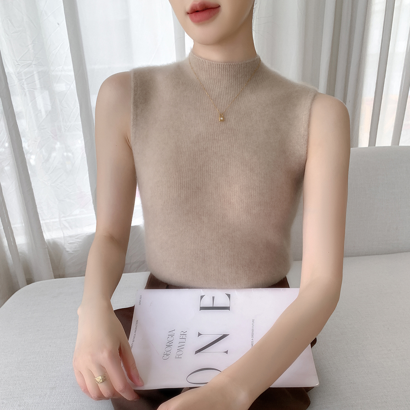 亲肤软糯100纯羊绒针织马甲背心女半高领修身显瘦无袖坎肩毛衣衫