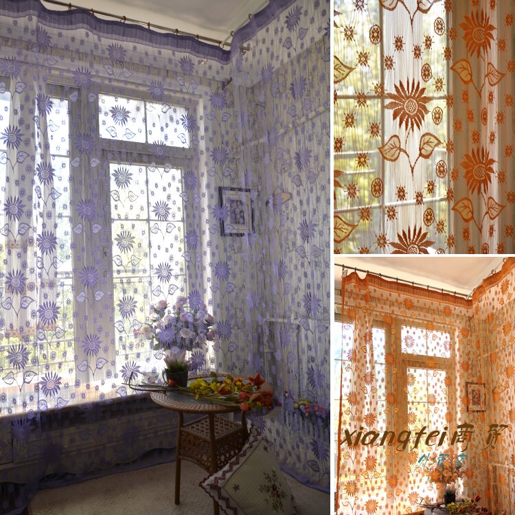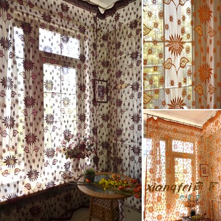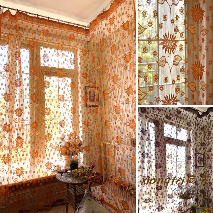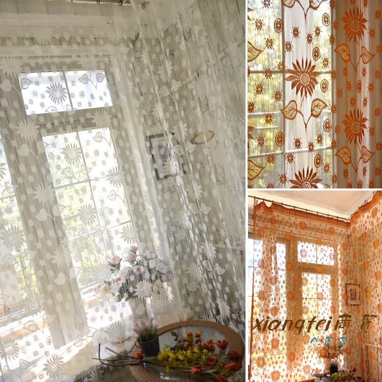 韩式客厅窗帘阳台桔色线帘米白色成品窗帘窗纱隔断帘门帘飘大窗帘