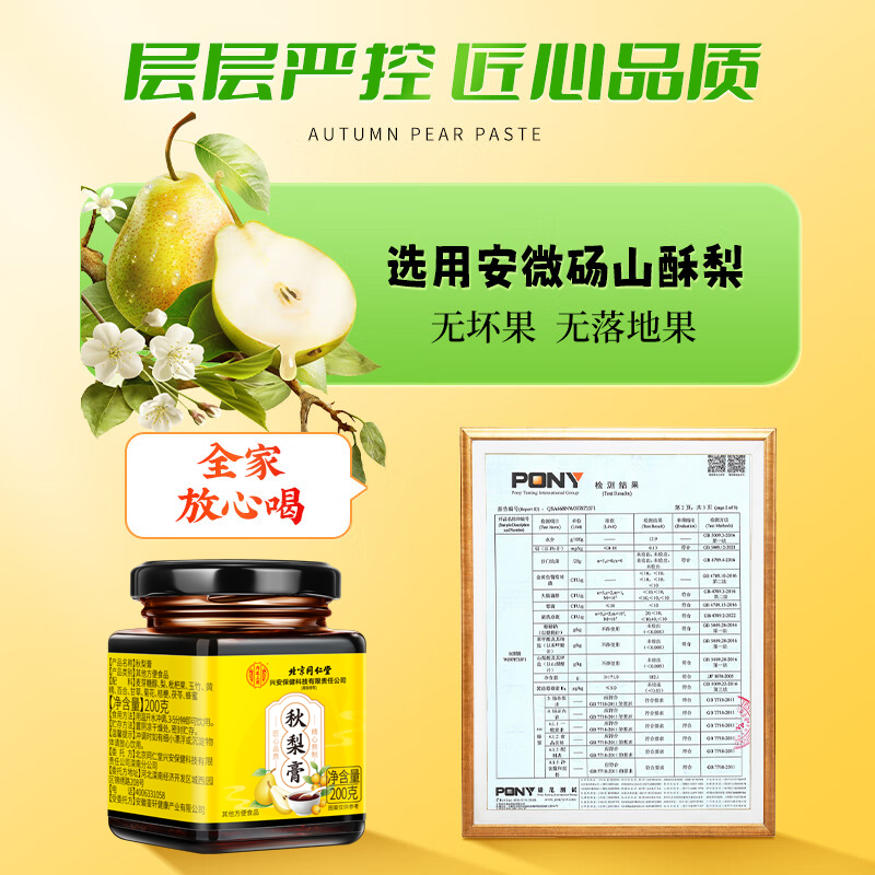 北京同仁堂枇杷秋梨膏润喉无添加儿童非止润痰肺化咳纯雪梨膏止咳