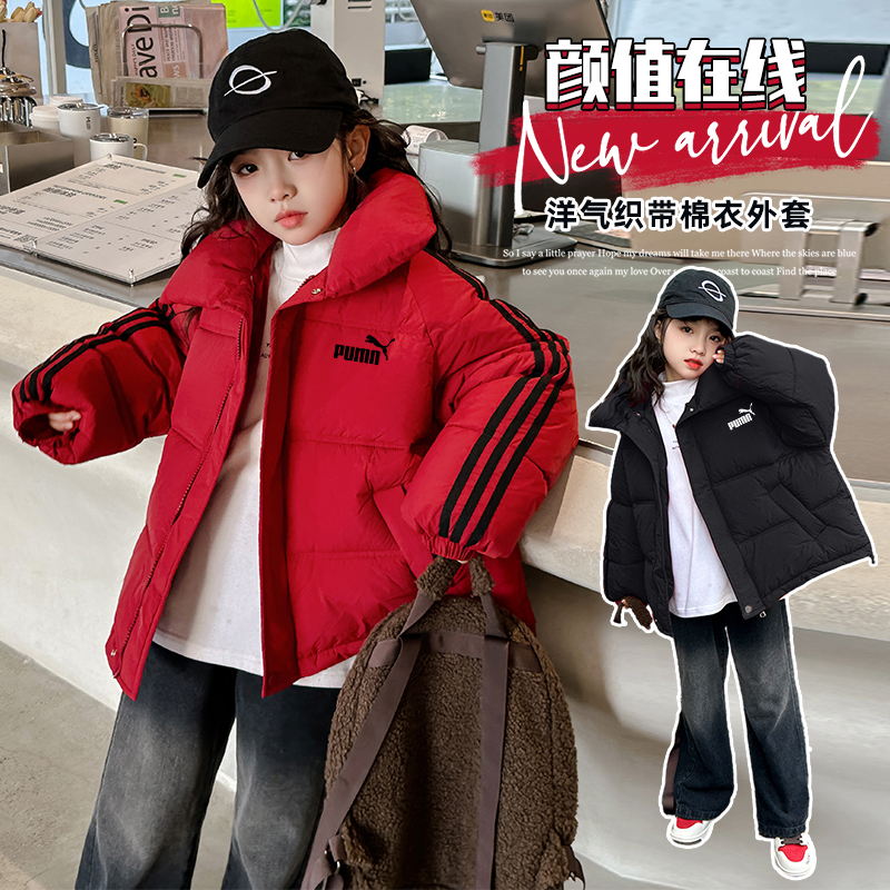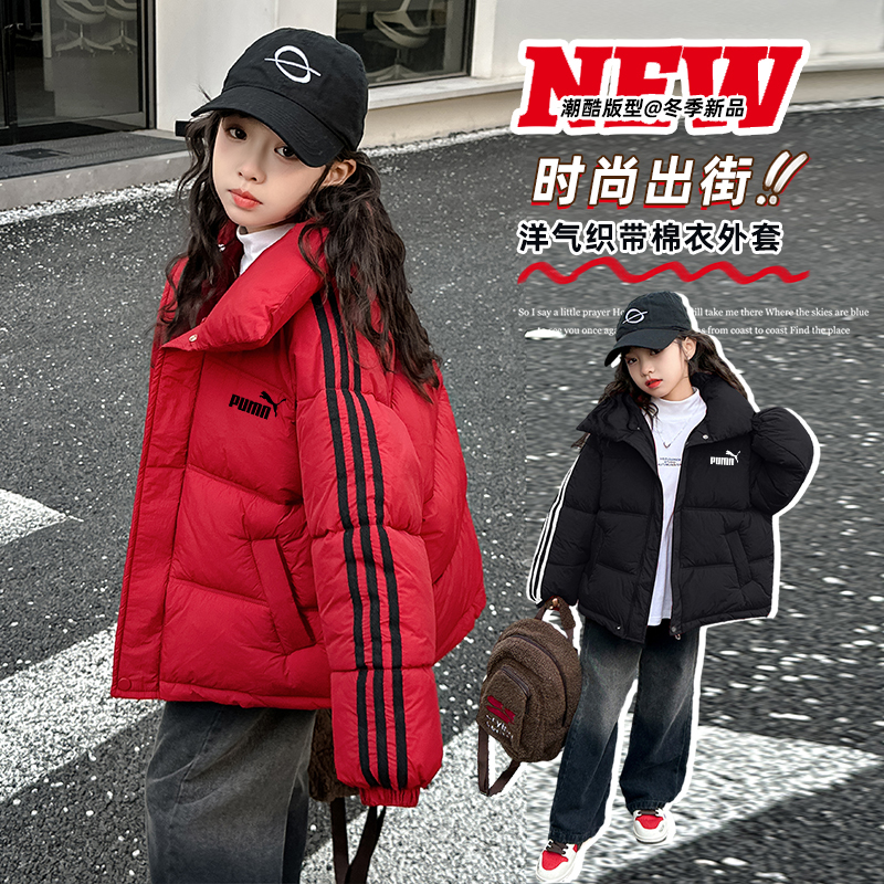 奥莱专柜女童棉服短款羽绒服冬季儿童冬装儿童简约百搭中大童外套