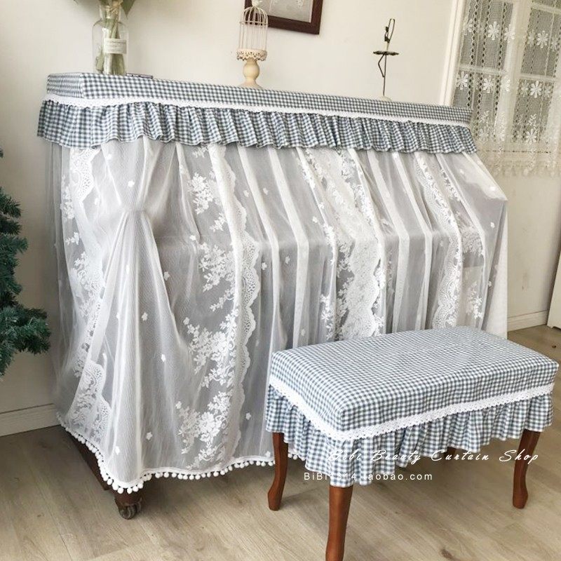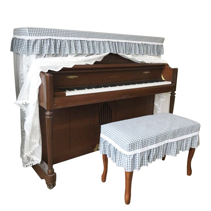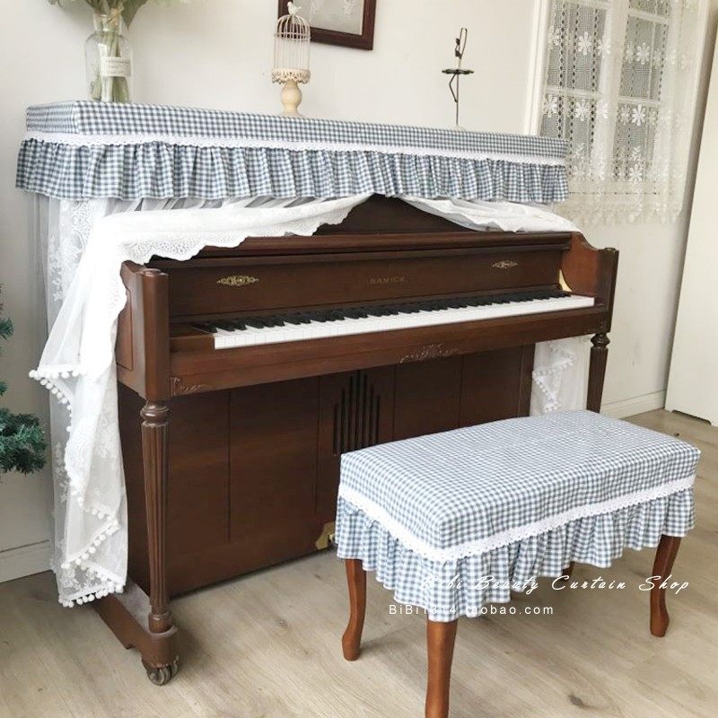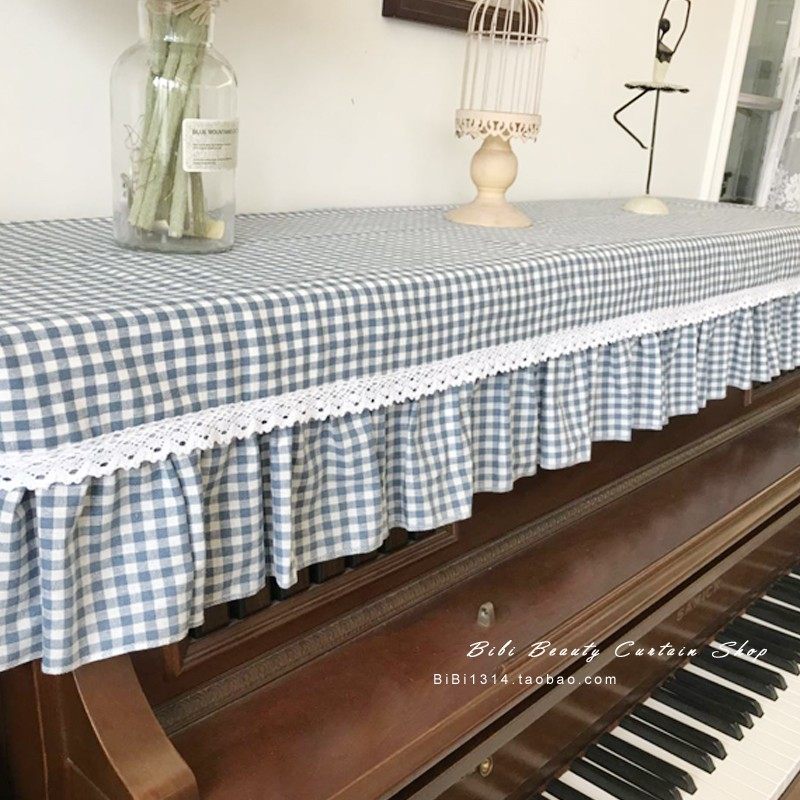 马小萌新品田园棉麻色织蓝格子双层夹棉加厚防尘钢琴罩全罩半罩