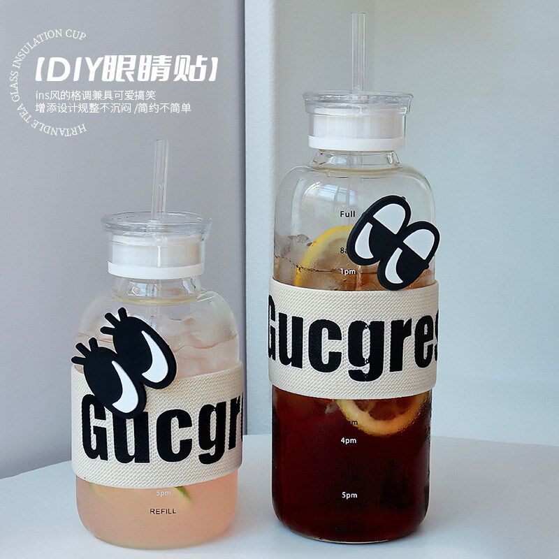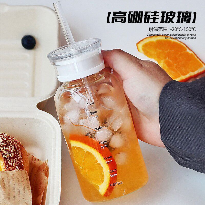 简约情侣大容量刻度玻璃水杯耐高温吸管双盖泡茶咖U啡杯家用牛奶