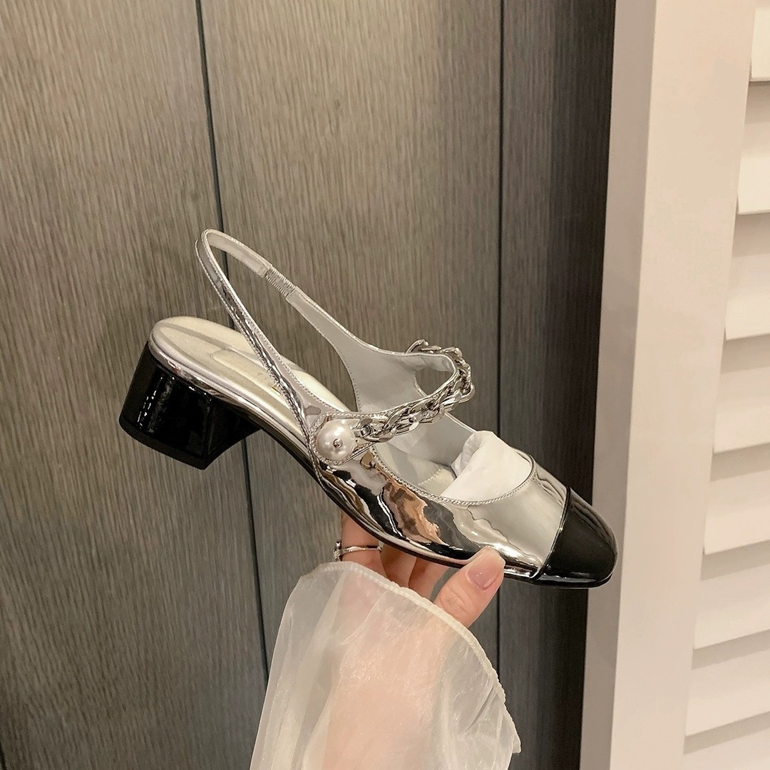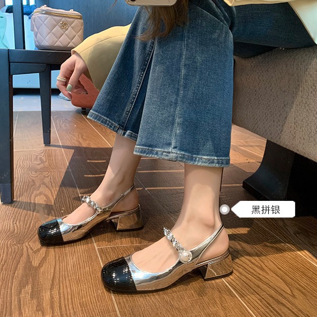 强胜达新款后空包头凉鞋法式粗跟方头一字扣小香风玛丽珍单鞋女