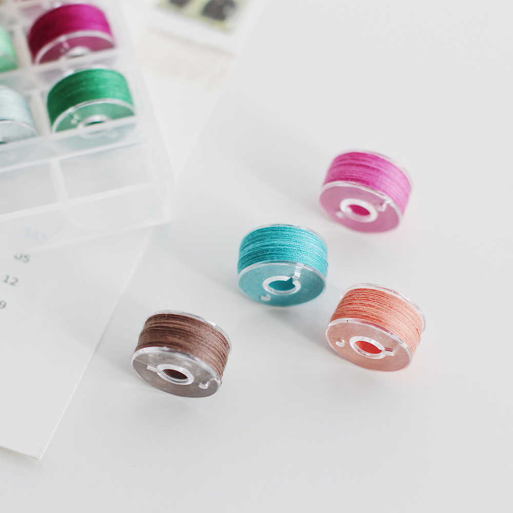 家用缝纫机配件25色塑料梭芯收纳盒带线 绕线芯盒装缝纫机梭心线