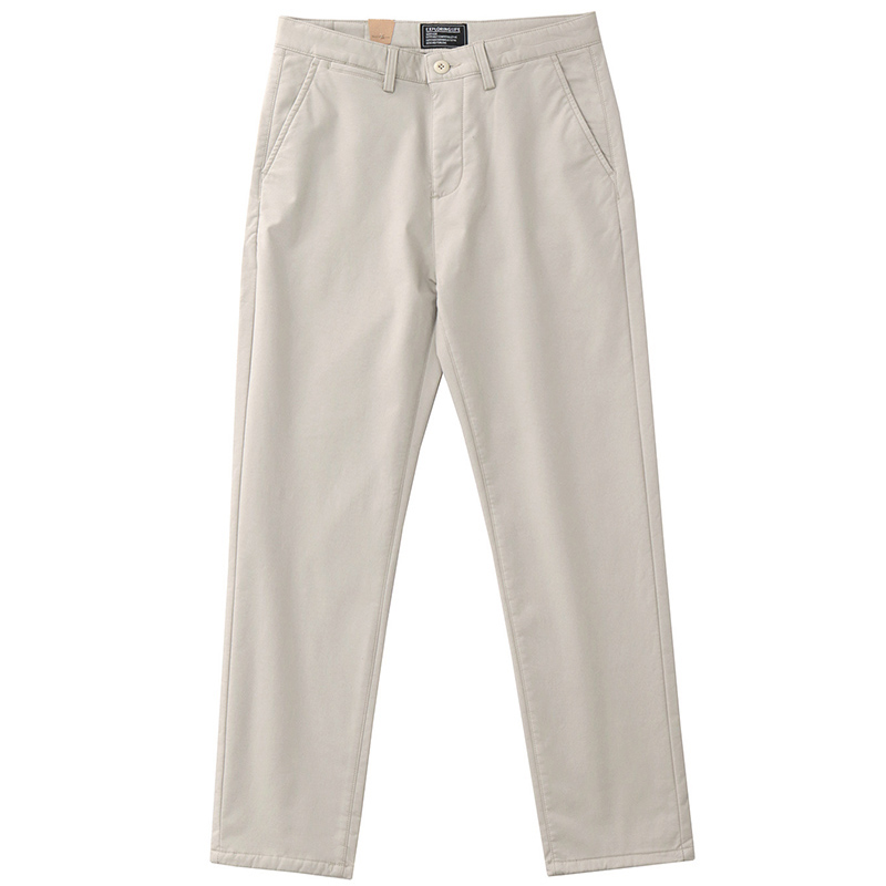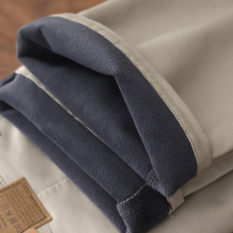 冬季加绒直筒长裤美式Chino工装复古简约米白色保暖微弹休闲裤男
