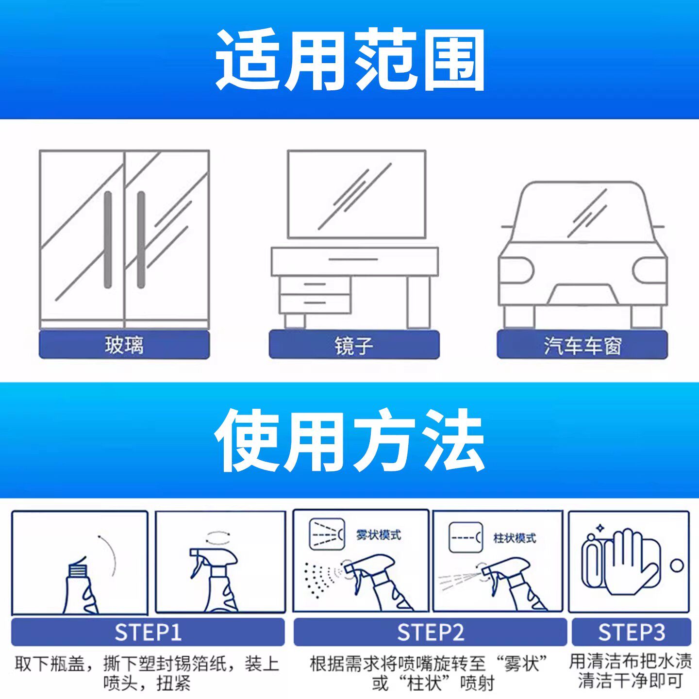 玻璃清洁剂家用擦玻璃水强力清洗剂去污擦窗镜子浴室玻璃除垢专用