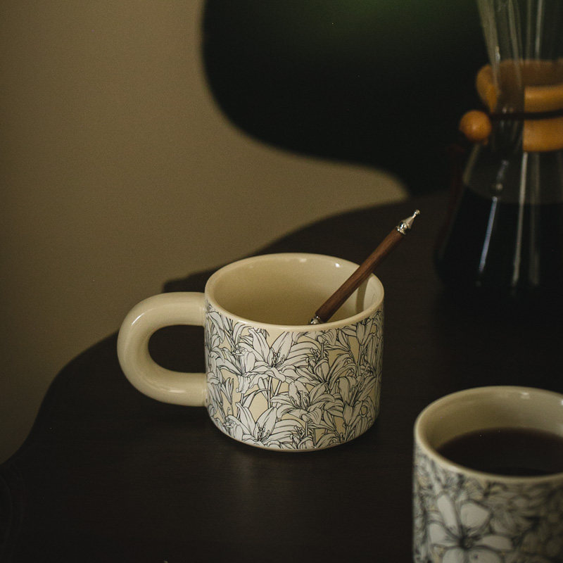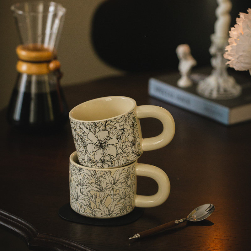 法式 奶油色鸢尾花陶瓷马克杯 咖啡水杯茶杯牛奶早餐杯好看高颜值