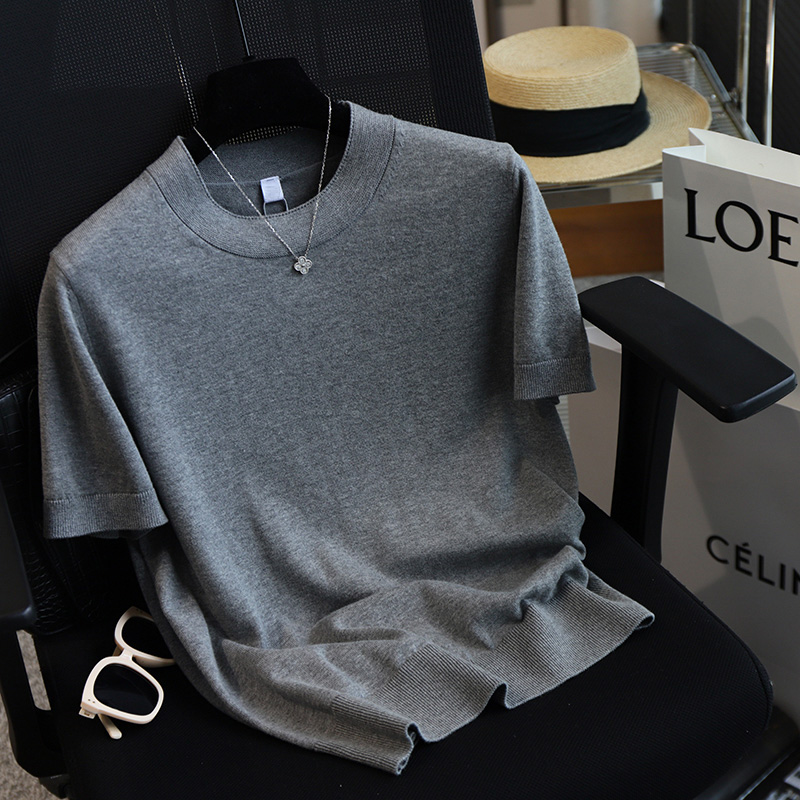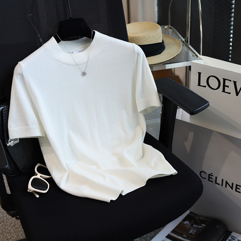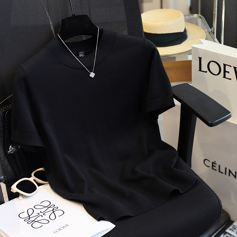 高品质简约全棉针织短袖T恤女夏款新款舒适透气显瘦气质体恤上衣