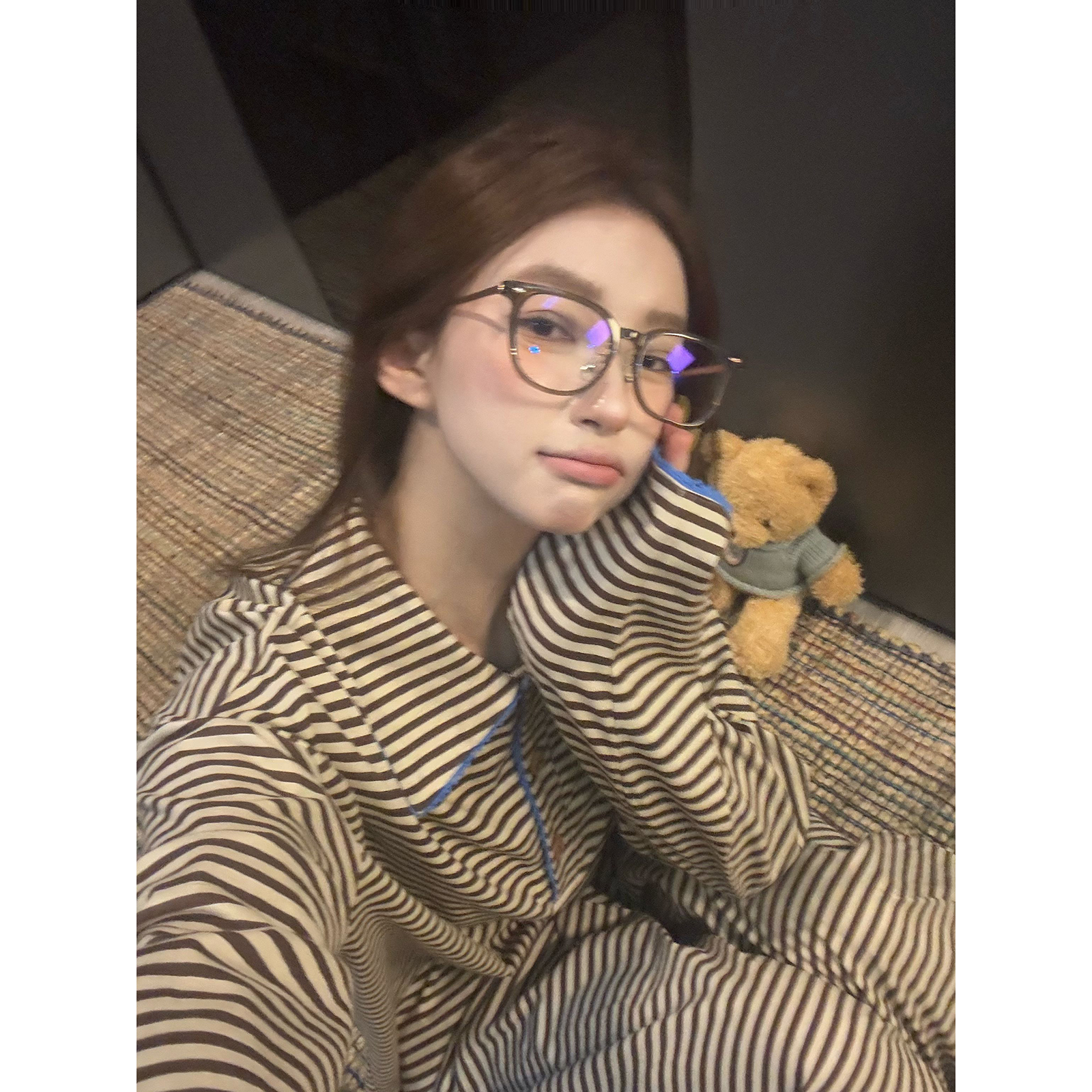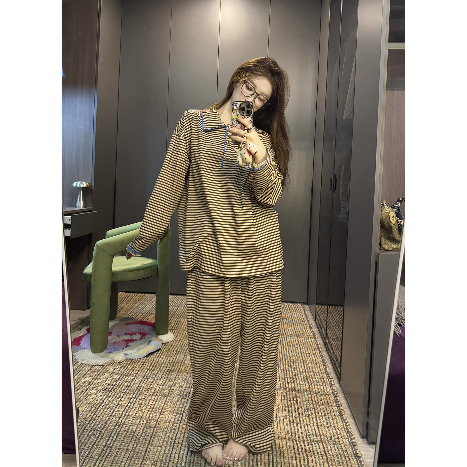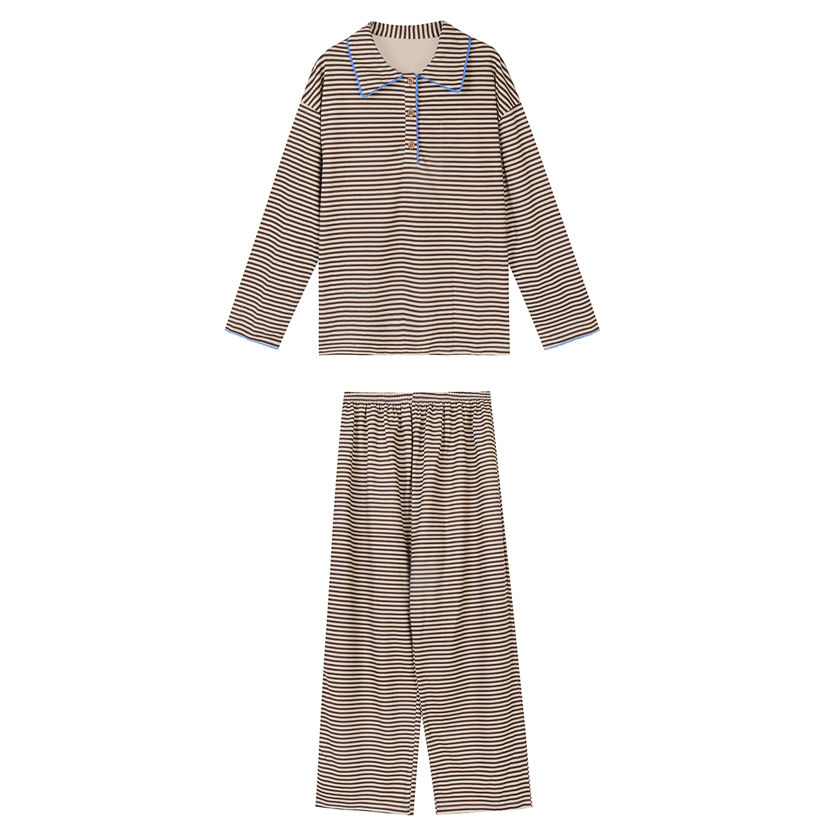 JoyceBra韩系撞色条纹翻领睡衣