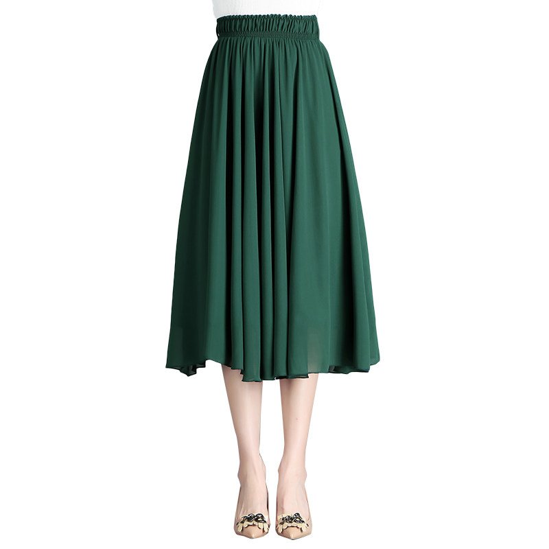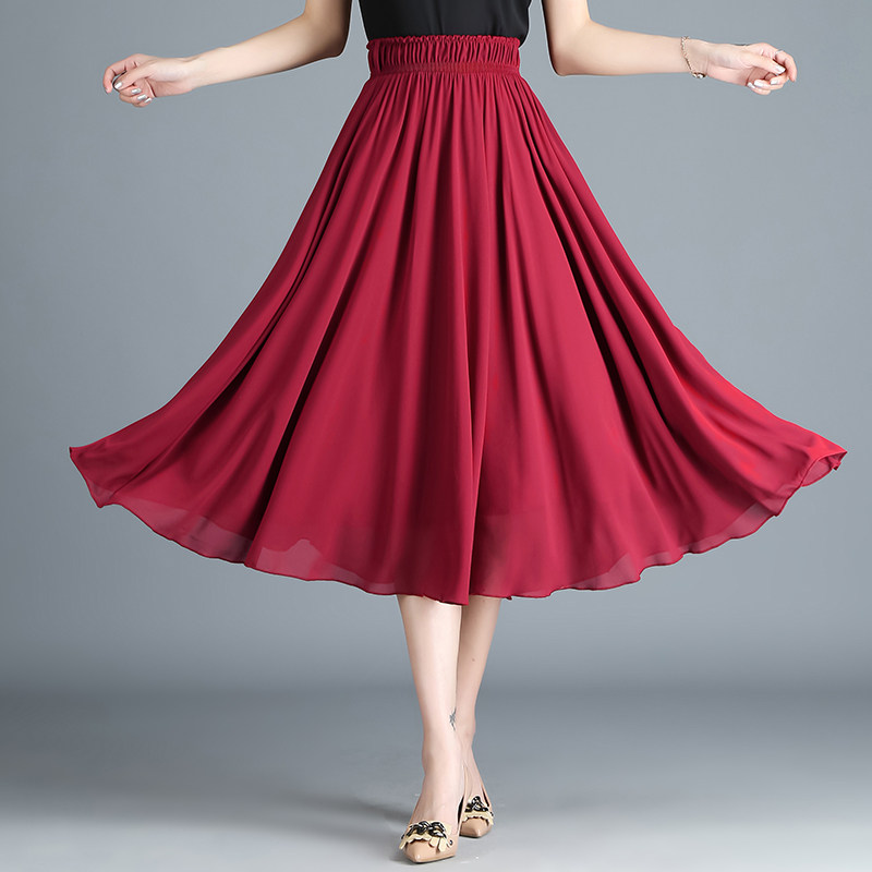 雪纺半身长裙女202n1夏季新款高腰中长款舞蹈裙大摆宽松显瘦百褶