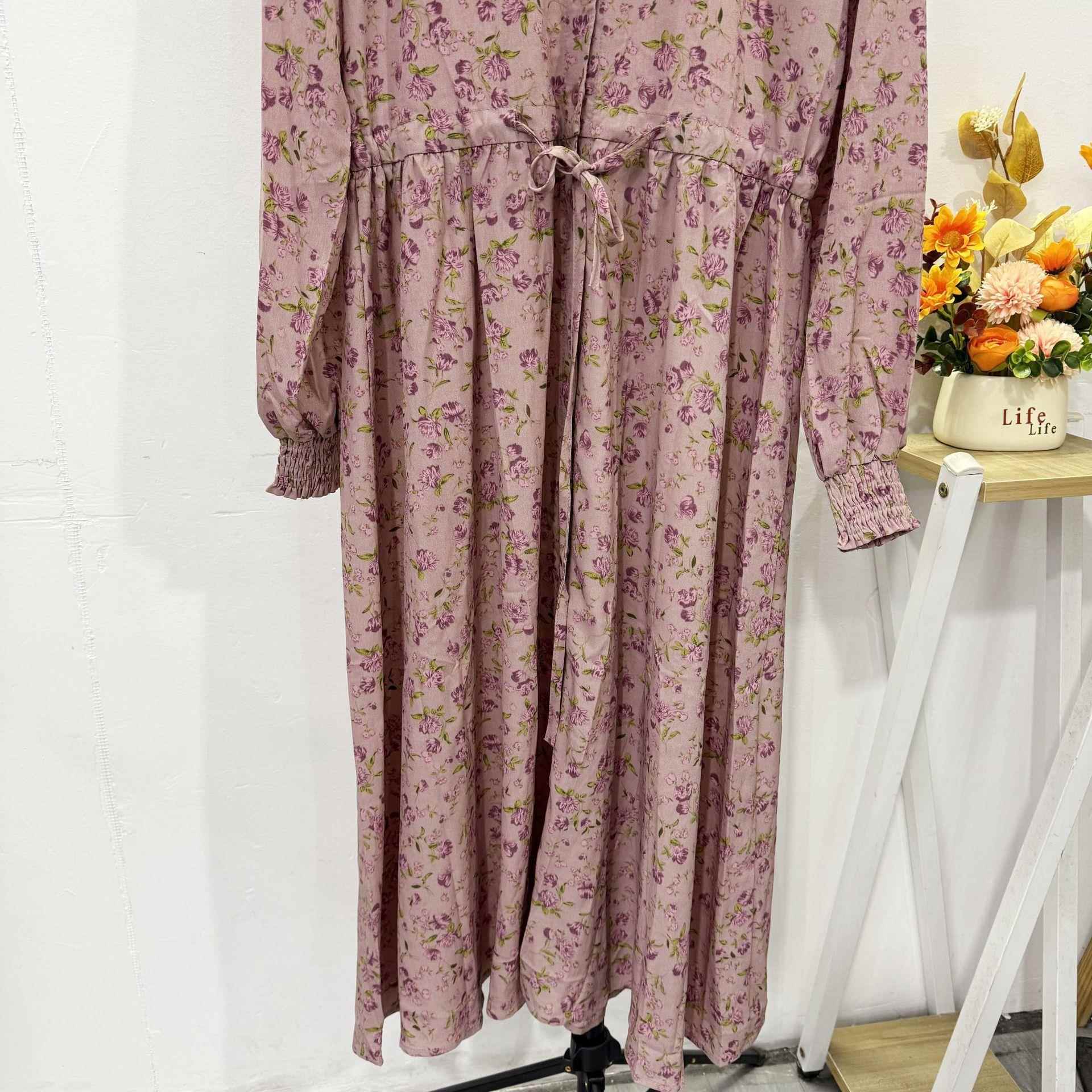 大码2024秋季新款半开V领高腰气质中长裙百搭显瘦A字碎花连衣裙