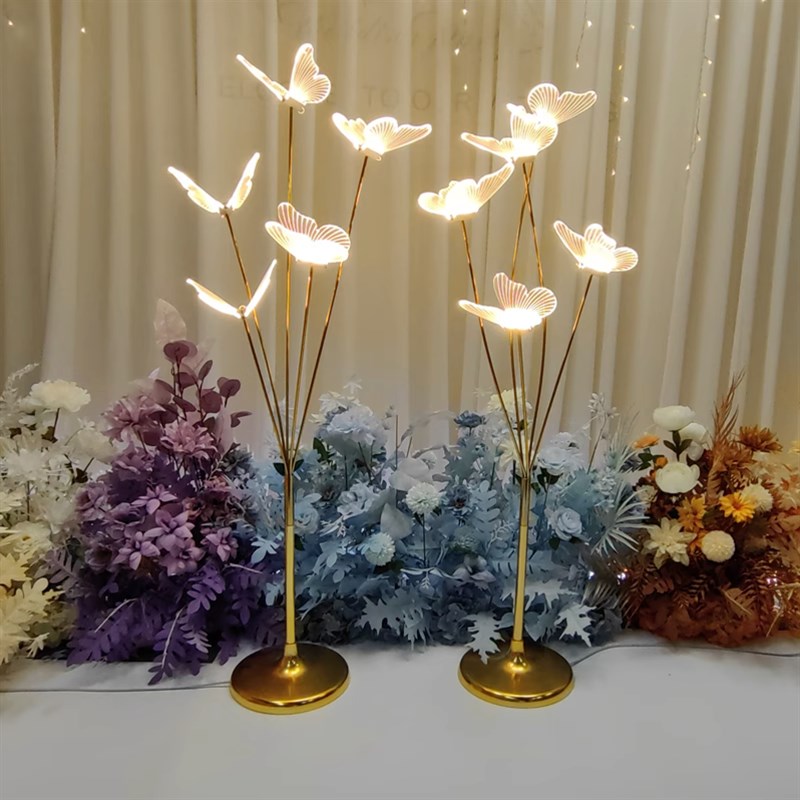 新款婚庆蝴蝶路引灯婚礼求婚舞台压克力发光地插灯金色装饰道具