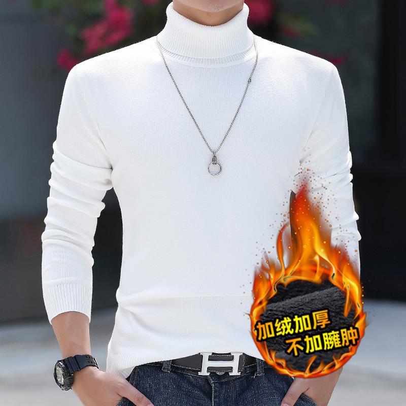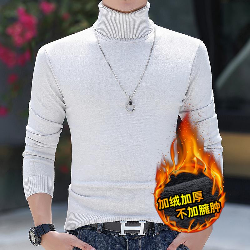 秋冬毛衣男士新款上衣加绒加厚高领修身套头针织衫大码保暖1002c