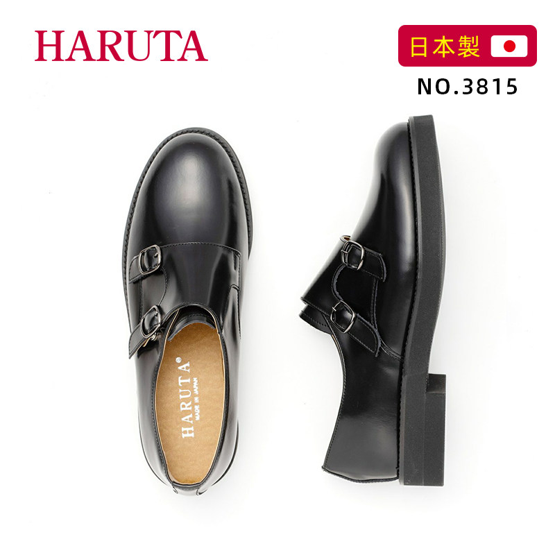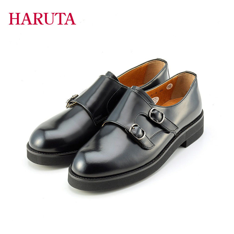 haruta日系3815女鞋布洛克平底复古圆头英伦小皮鞋女牛皮孟克鞋子