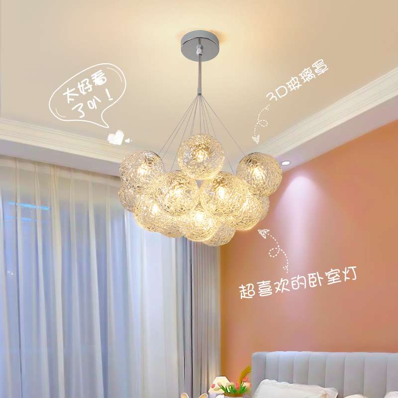 卧室吊灯北欧玻璃球泡泡灯客厅餐厅儿童房星球灯简约现代魔豆灯具