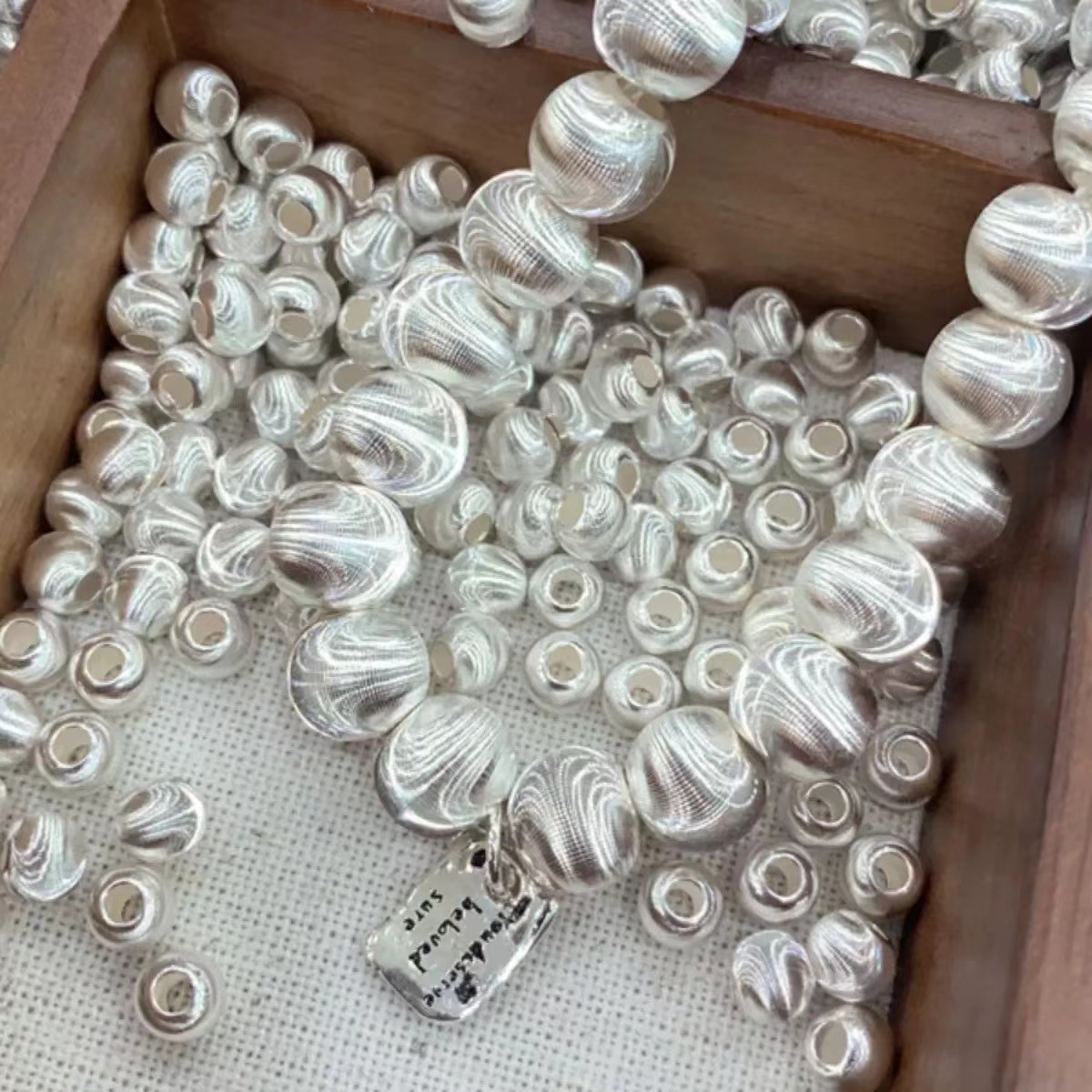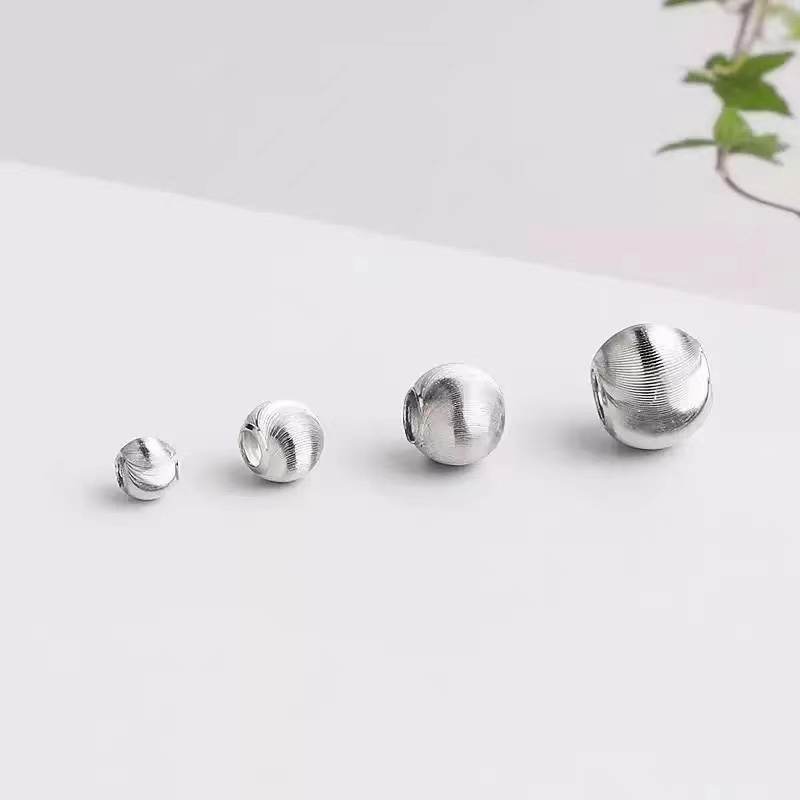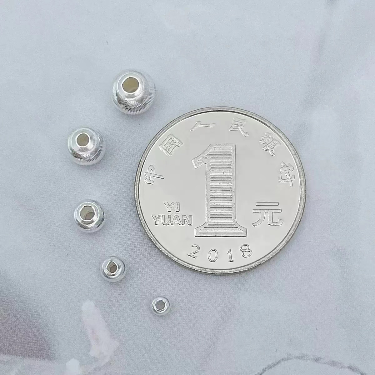 真银坊999足银拉丝猫眼珠diy手工串珠材料银散珠银配件圆形隔珠