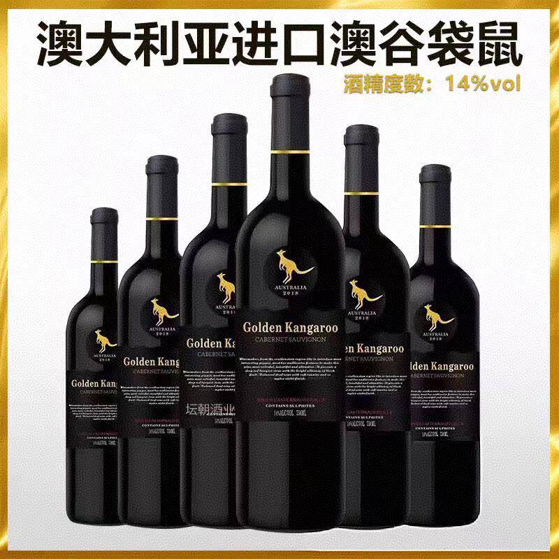 澳谷袋鼠澳洲进口干红葡萄酒赤霞珠14/14.5度红酒整箱750ml/6瓶