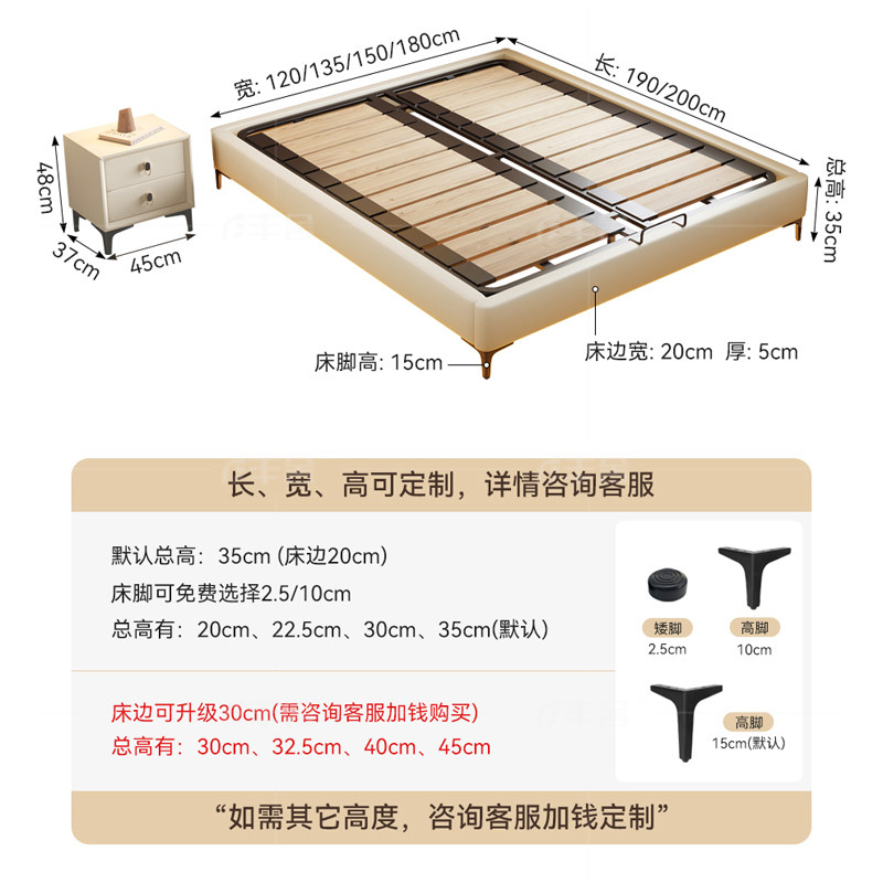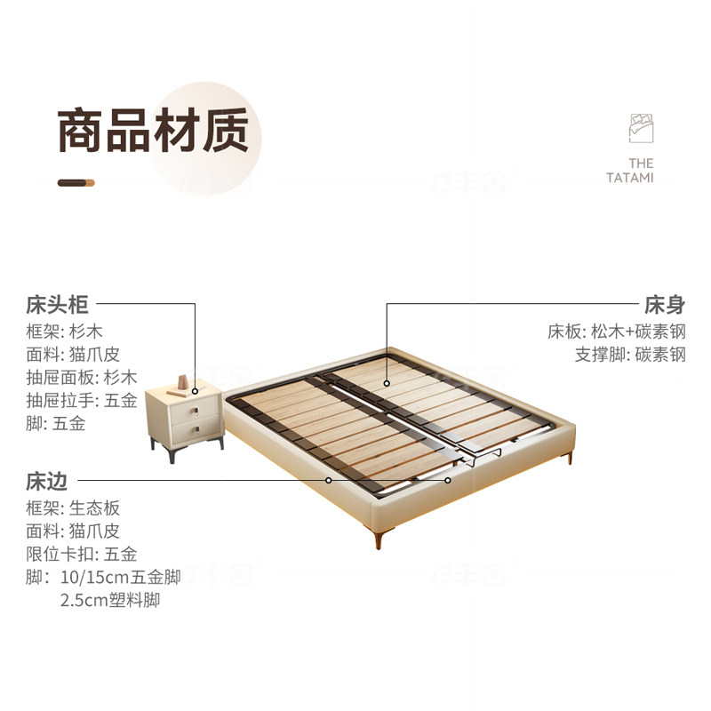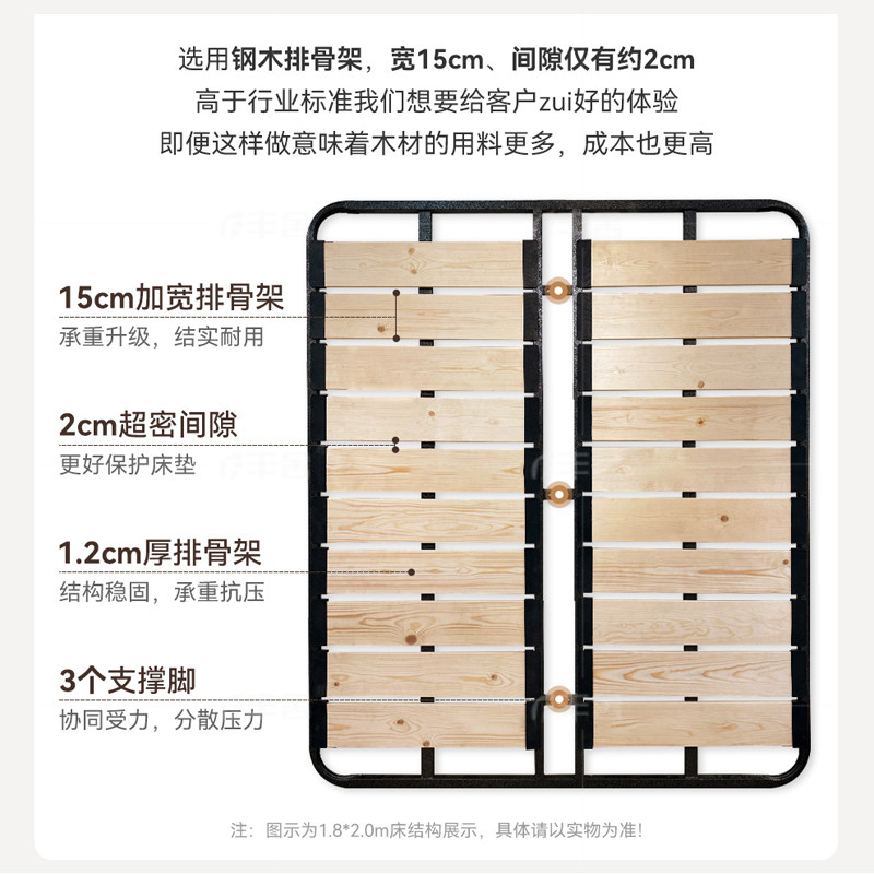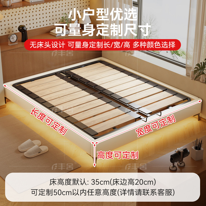 丰舍可定制榻榻米实木无床头现代简约排骨架小户型齐边床架真皮床