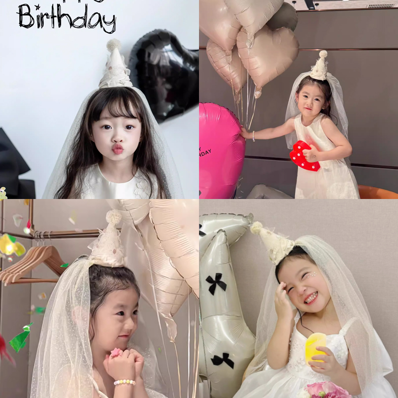 公主水钻皇冠儿童生日帽派对场景布置发箍女孩头纱帽子头饰
