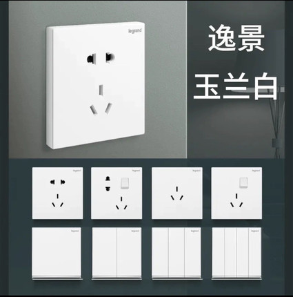 罗格朗开关插座面板逸景玉兰白色86型单开五孔带usb暗装墙壁电源