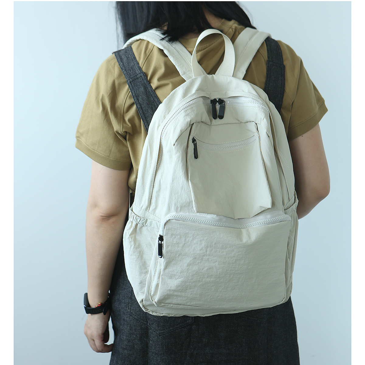 布谷森林女士尼龙布复古轻便学生背包通勤休闲大容量双肩包潮B579