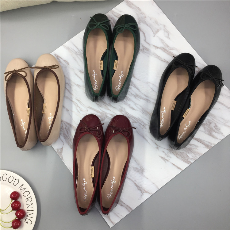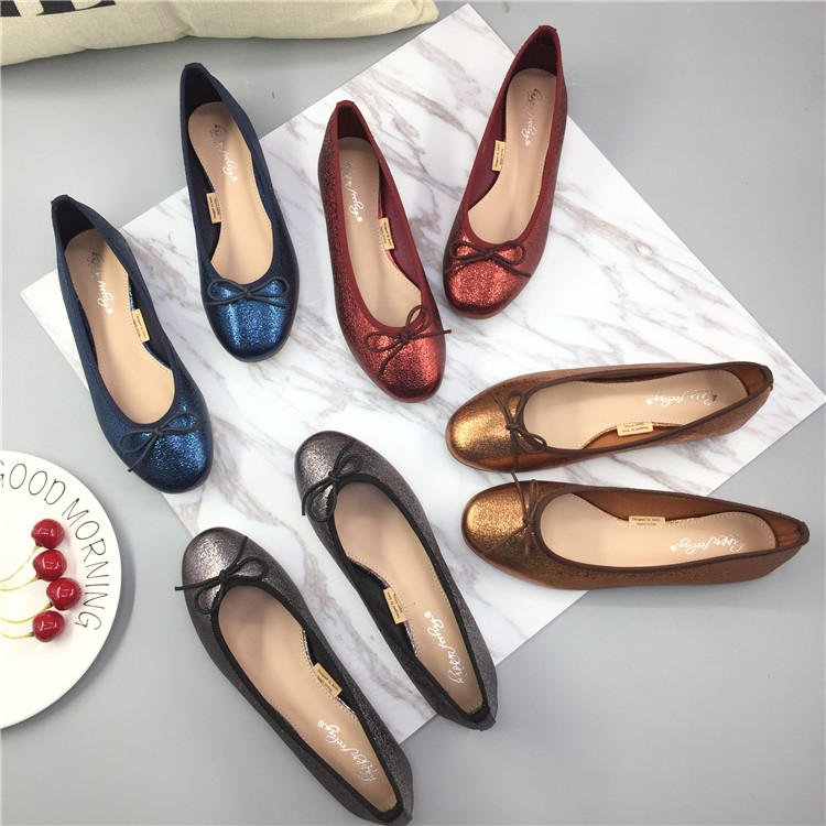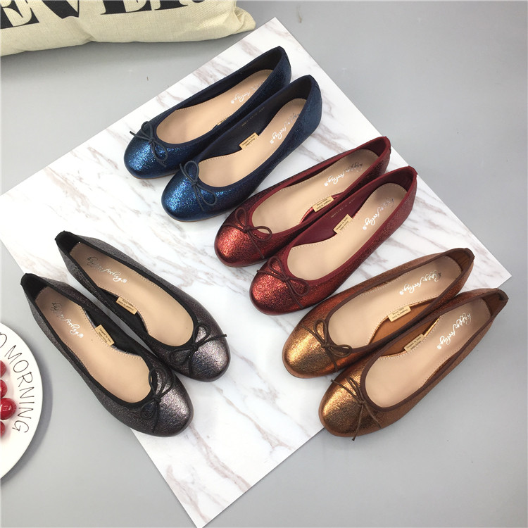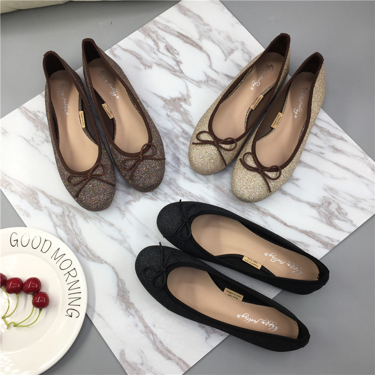韩版~可爱圆头系带蝴蝶结设计浅口低帮单鞋 时尚甜美百搭平底女鞋