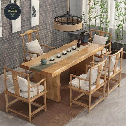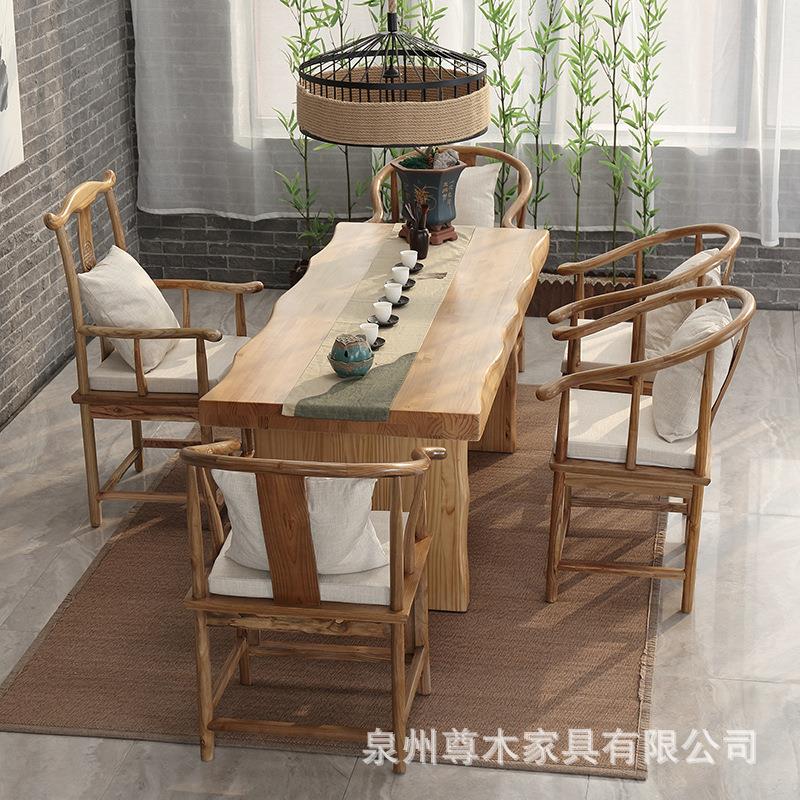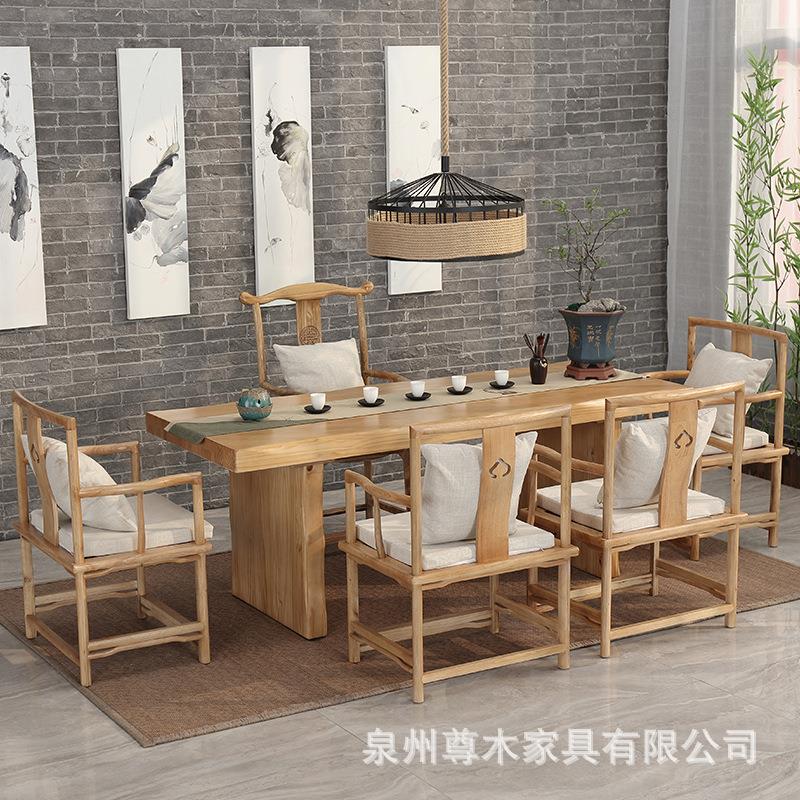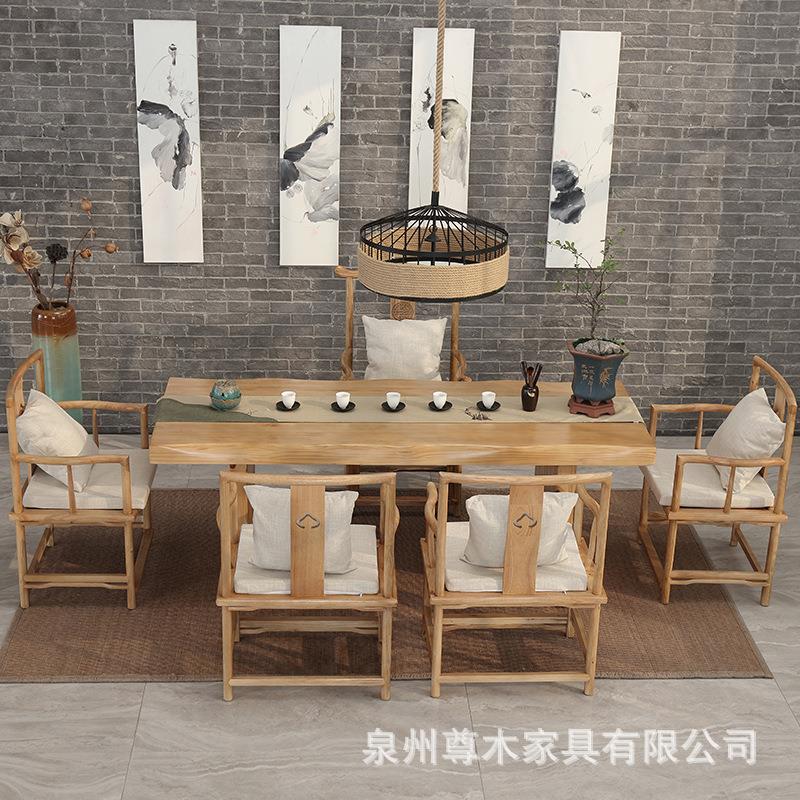 新中式全实木茶桌公司会客泡茶桌椅组合民宿原木大板功夫茶台