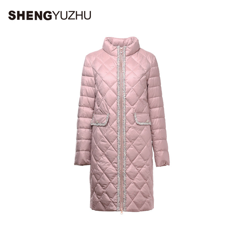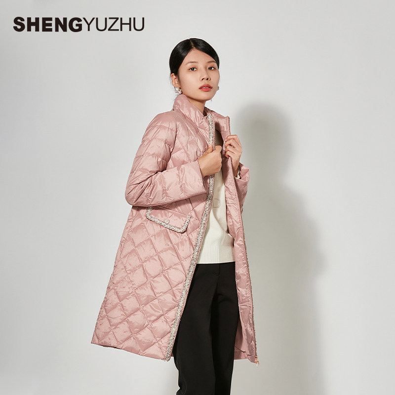 声雨竹官方旗舰店秋冬新款立领修身显瘦长袖羽绒服女中长款高级感
