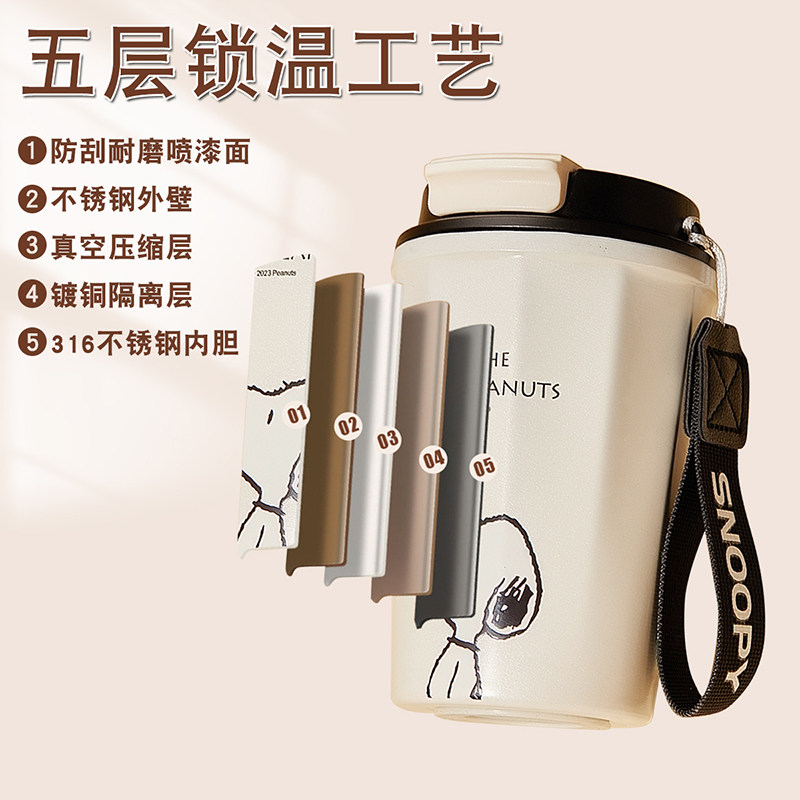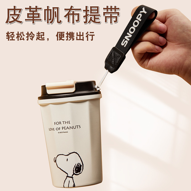 史努比咖啡杯保温杯子男款女便携随行杯新款吸管杯不锈钢保冷水杯
