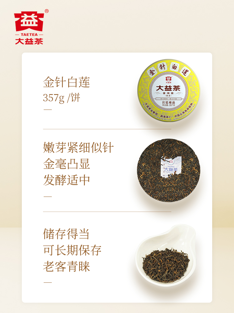 大益普洱茶 金针白莲熟茶 七子饼茶 中华老字号 2101批次