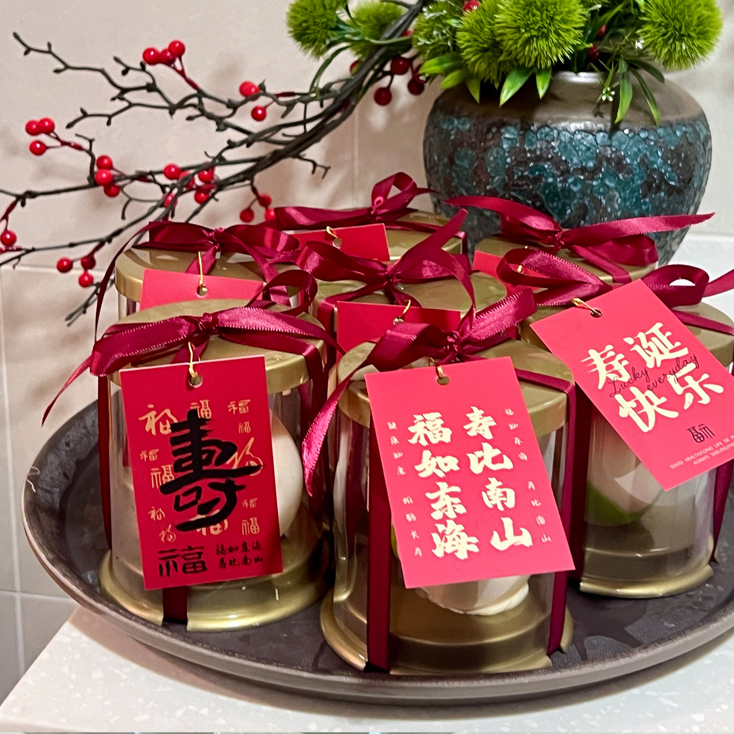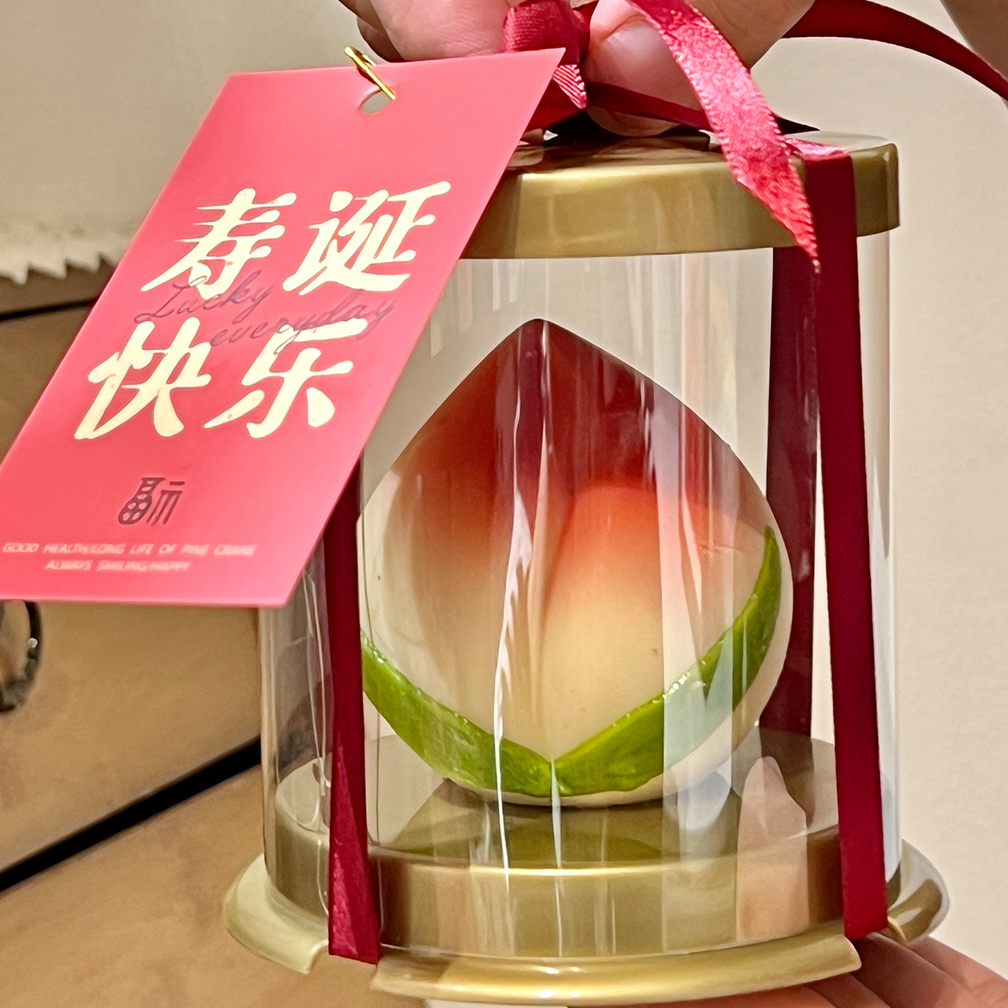 网红款老人过寿寿桃伴手礼小蛋糕圆形2寸手提盒长辈祝寿贺卡装扮