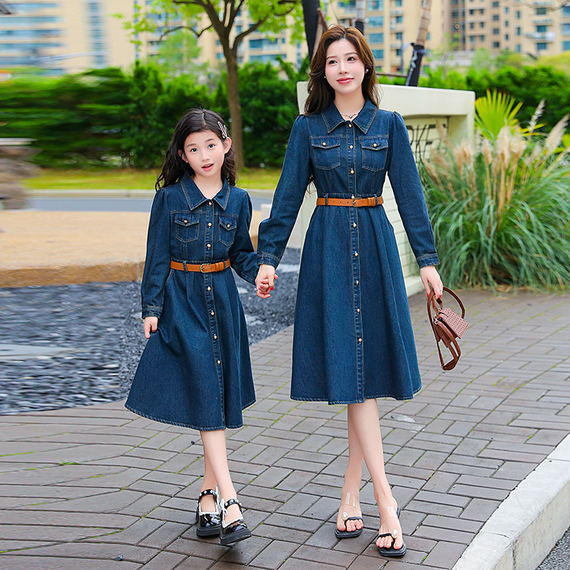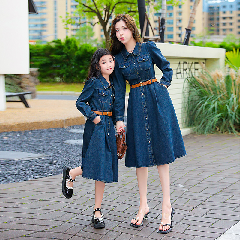 高端亲子装牛仔连衣裙洋气2025新款女童炸街母女装裙子韩版春秋装