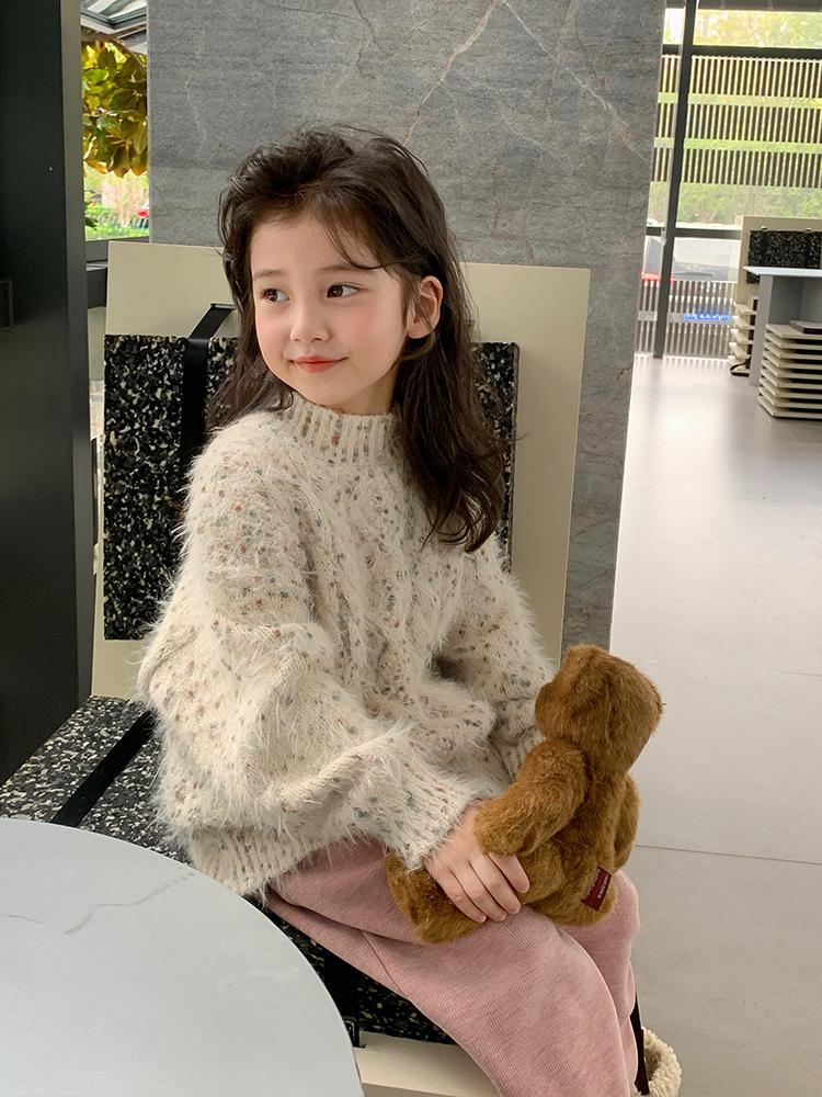 女童水貂绒毛衣2025新款洋气秋冬装加厚小女孩针织打底衫保暖上衣