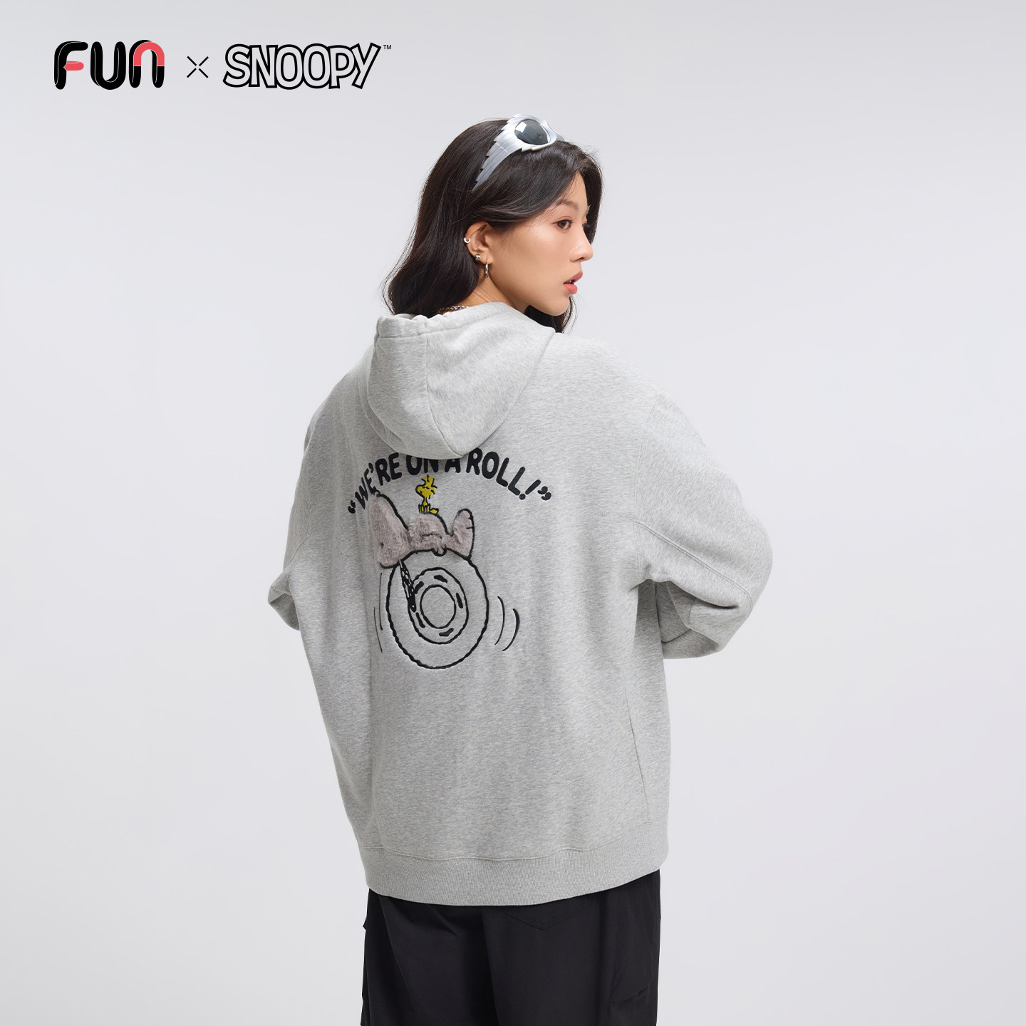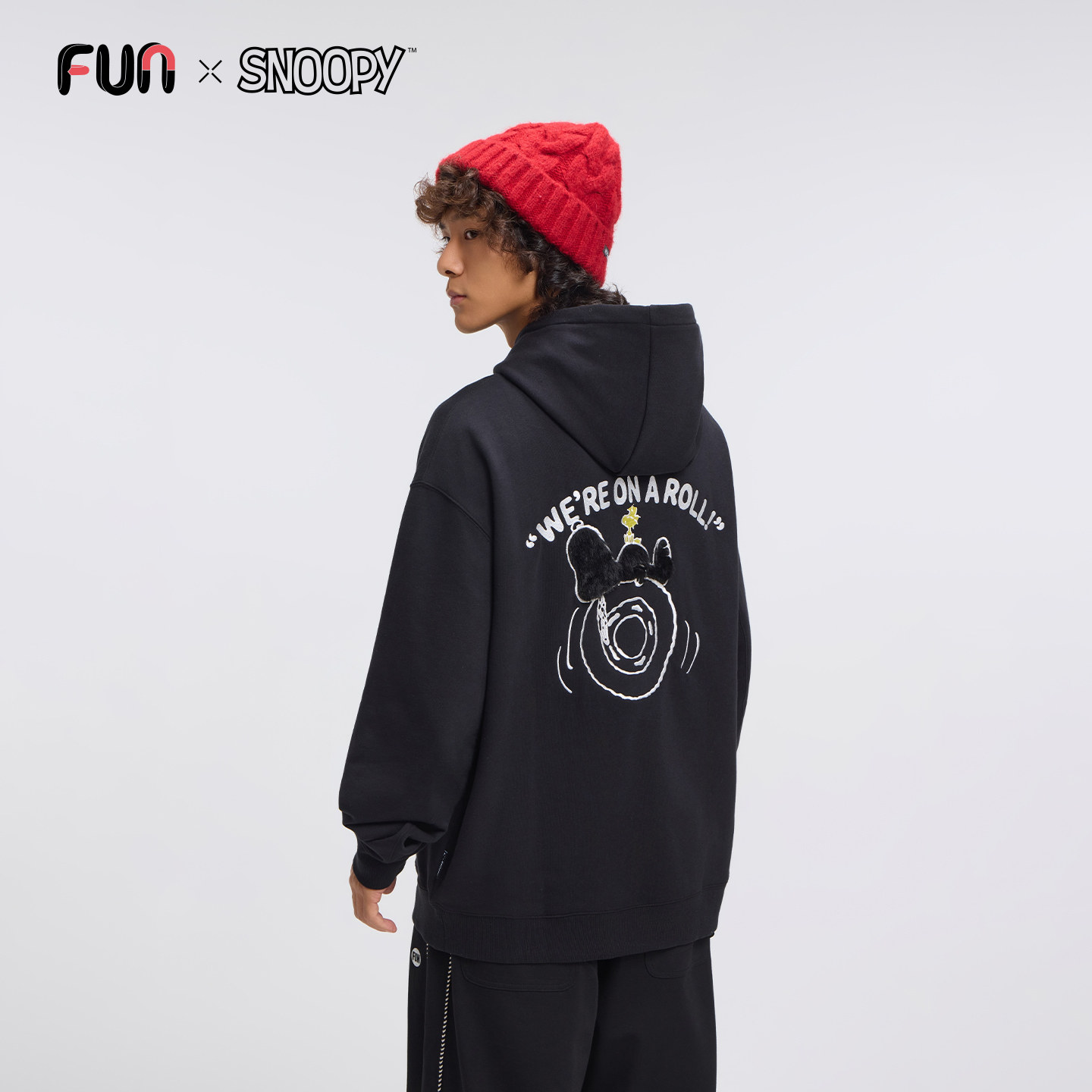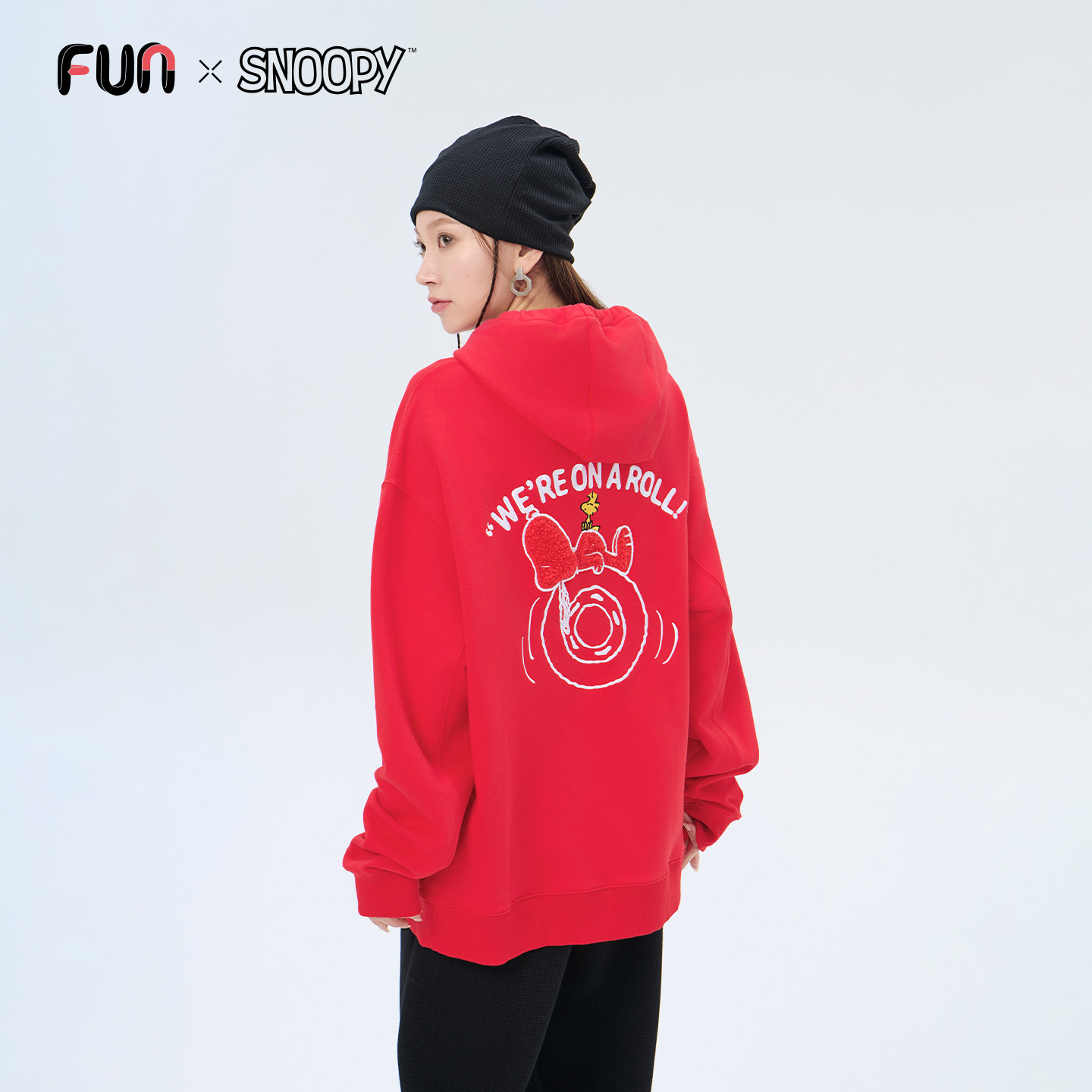 Fun潮牌连帽套头卫衣红色史努比联名休闲宽松男女款帽衫中性外套