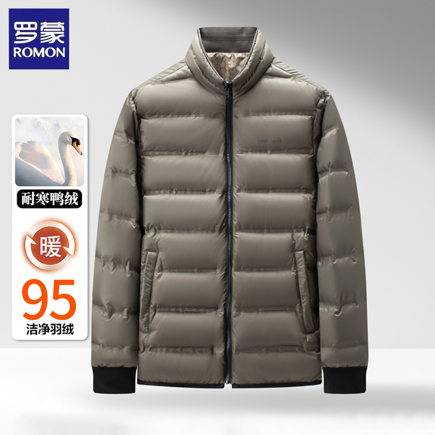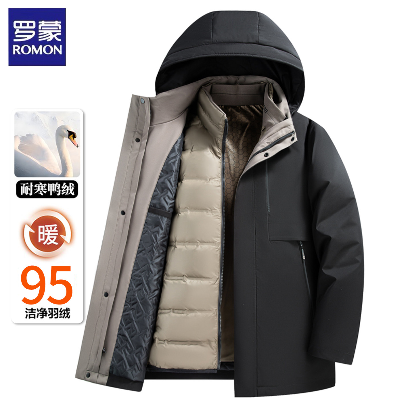 罗蒙鸭绒羽绒服男士冬季商务休闲防风抗寒保暖可拆卸内胆外套冬装