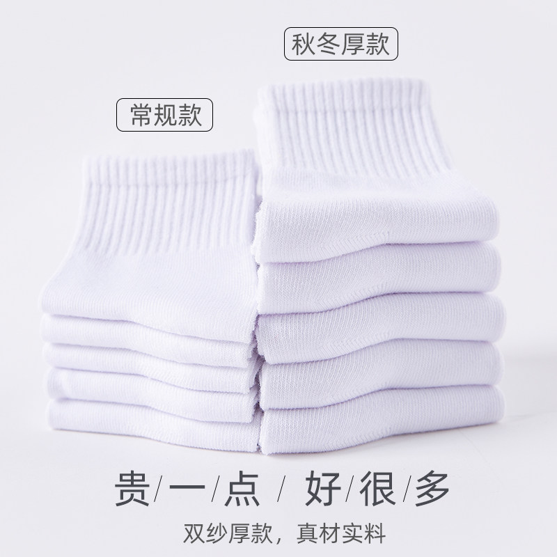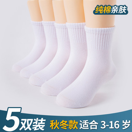 儿童袜子白色加厚中筒无骨棉袜男孩春秋冬中大女童学生运动袜表演