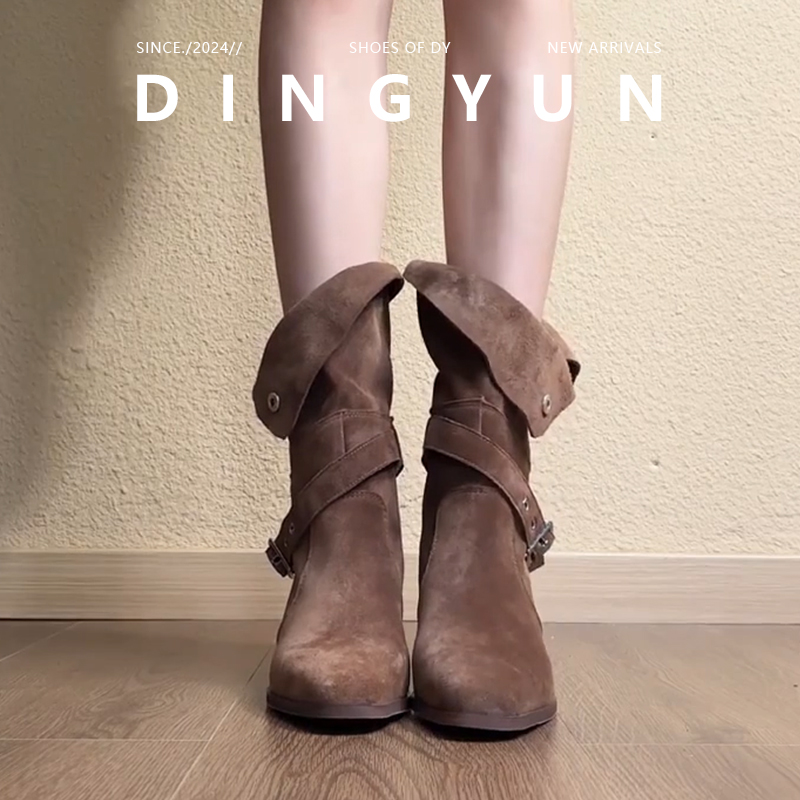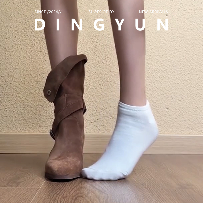 羊皮版dingyun丁允短靴内增高中筒靴卡其西部靴巨好看骑士马丁靴