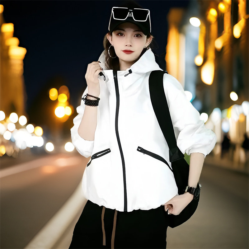 红色高级感短款外套女秋新款休闲宽松连帽运动风衣夹克减龄上衣潮