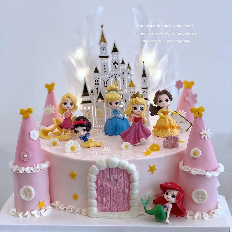 女孩女宝宝梦幻城堡生日蛋糕装饰公主出游摆件小公主插件甜品台
