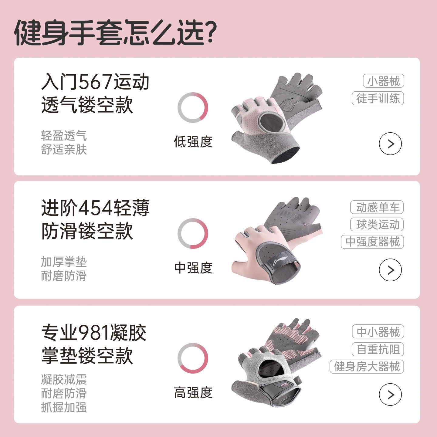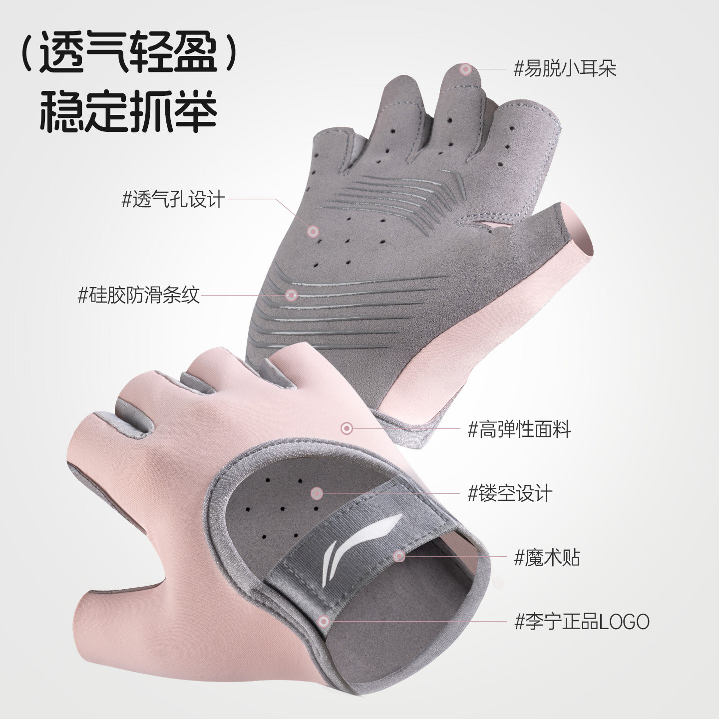 李宁女士专用健身手套防起茧