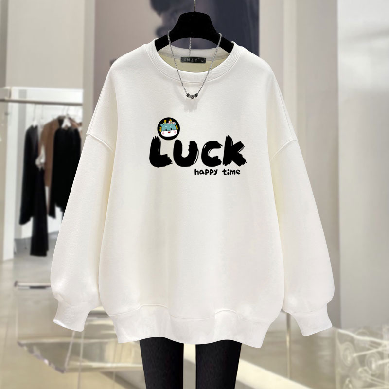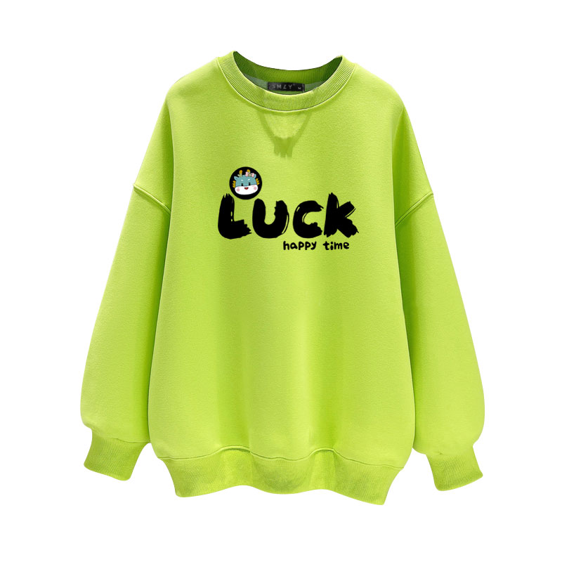 2025年春秋冬国风字母可爱龙年中长款宽松圆领套头荧光绿卫衣女